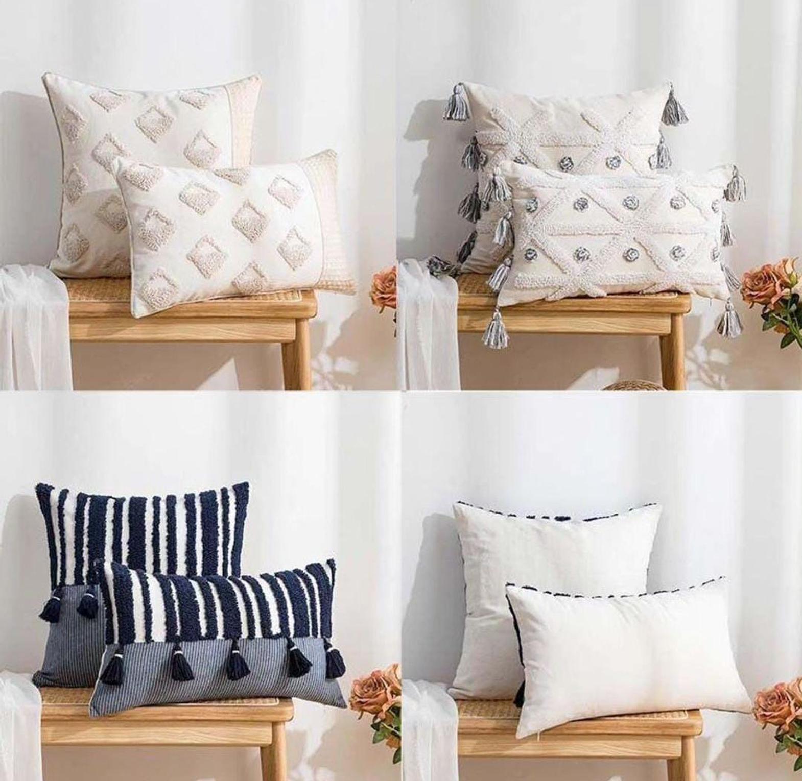 Elevate your living space with our tassels Moroccan-style lumbar pillow covers, designed to infuse your home with warmth and cultural flair. Crafted from high-quality fabric, these pillow covers feature intricate patterns and vibrant colors that capture the essence of Moroccan artistry. The playful tassels add a delightful texture, making these covers not only visually appealing but also invitingly cozy. Perfect for use on sofas, beds, or chairs, they provide excellent lumbar support while enhancing your decor with a touch of bohemian elegance. Whether you’re looking to create a serene oasis or a lively gathering space, these lumbar pillow covers serve as the perfect accent pieces. Easy to care for and versatile in style, they can seamlessly blend into any room, bringing a sense of adventure and creativity to your home. Transform your space with these stunning tassels Moroccan-style lumbar pillow covers, perfect for adding both comfort and character.