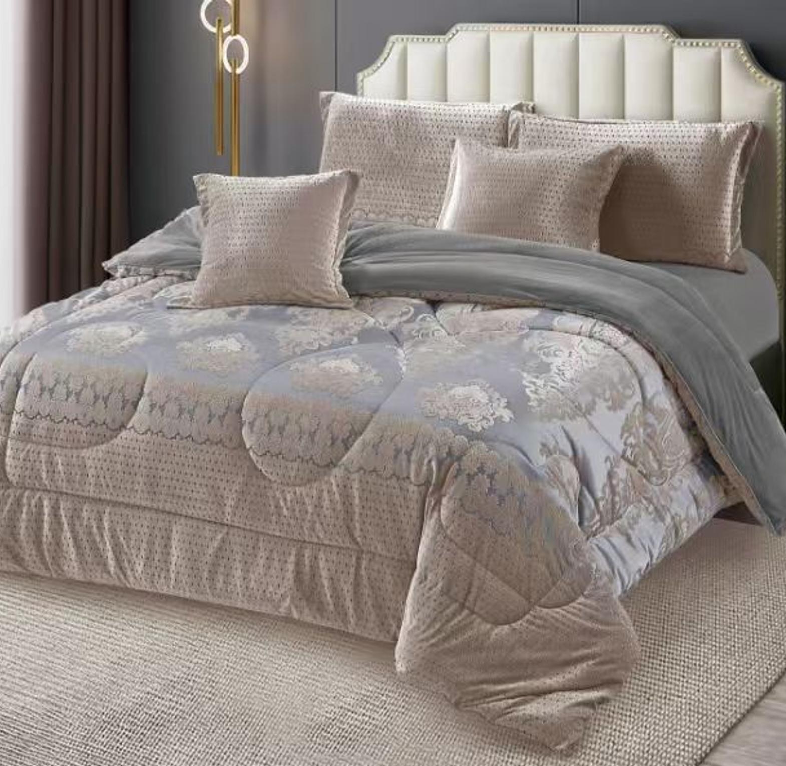Elevate your sleep experience with the Regal Silk Jacquard Duvet Set, designed for exquisite comfort and refined style. This grand 6 by 7 feet (180cm x 210cm) bedding collection is fashioned from a premium, heavy silk fabric featuring a subtle jacquard weave for a sophisticated, dimensional look. The natural properties of silk offer an incomparable sleep surface that is breathable and smooth against the skin, helping to regulate temperature and minimize friction. The comprehensive seven-piece set ensures a perfectly coordinated bed, including one large duvet cover, one fitted or flat bed sheet, two standard pillowcases, and two decorative throw pillowcases for layering. Investing in this high-quality, durable textile is a definitive step toward achieving a more restorative and stylish nightly rest.