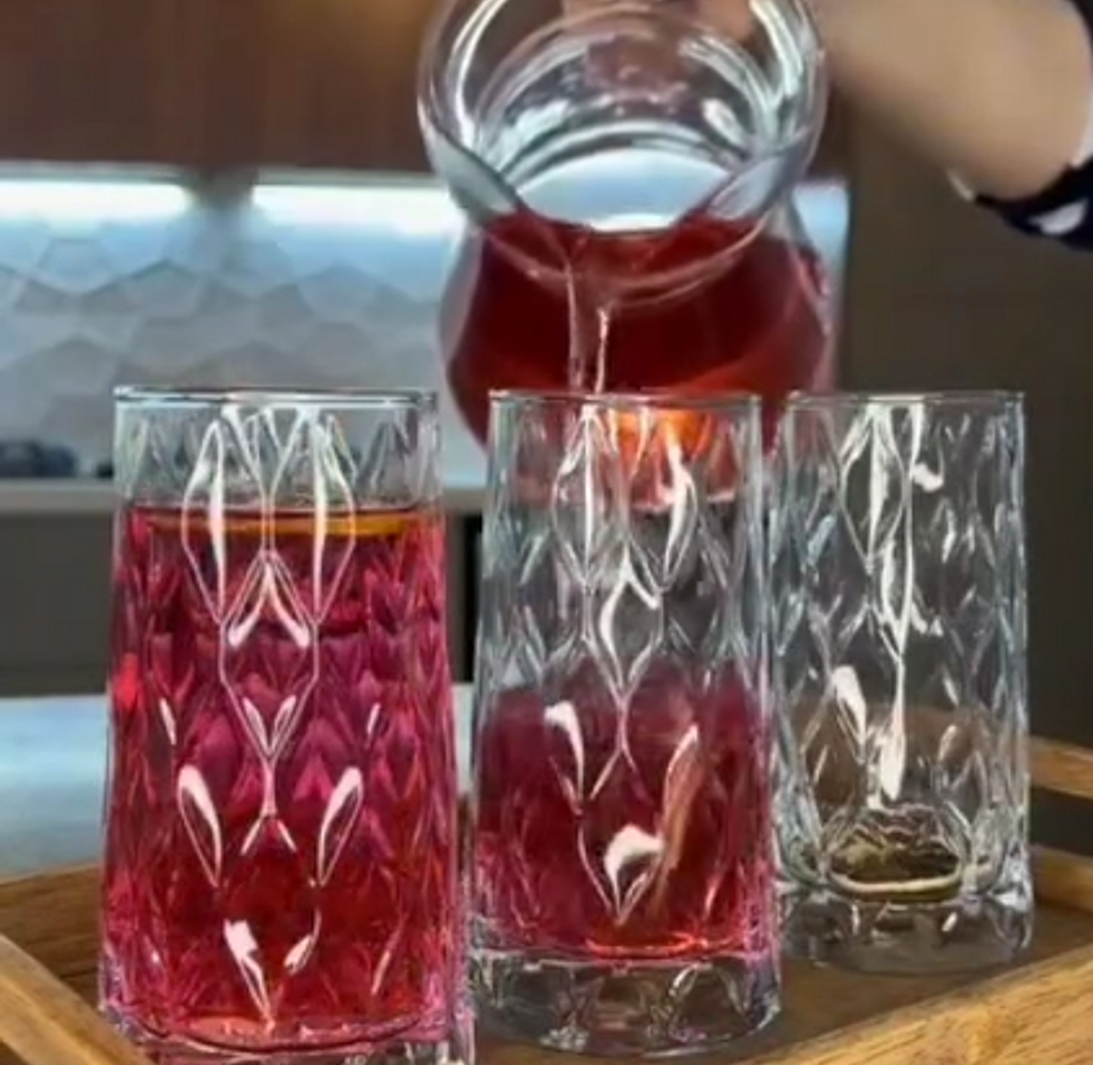 Indulge in a touch of luxury with our Unique Diamond Aesthetic Highball Glass. Designed for those who appreciate both form and function, this glass features a captivating diamond-cut pattern that not only enhances its visual appeal but also provides a comfortable and secure grip. Its distinctive texture makes every sip a refined experience, while its clear, high-quality glass construction allows the vibrant colors of your beverages to shine through.