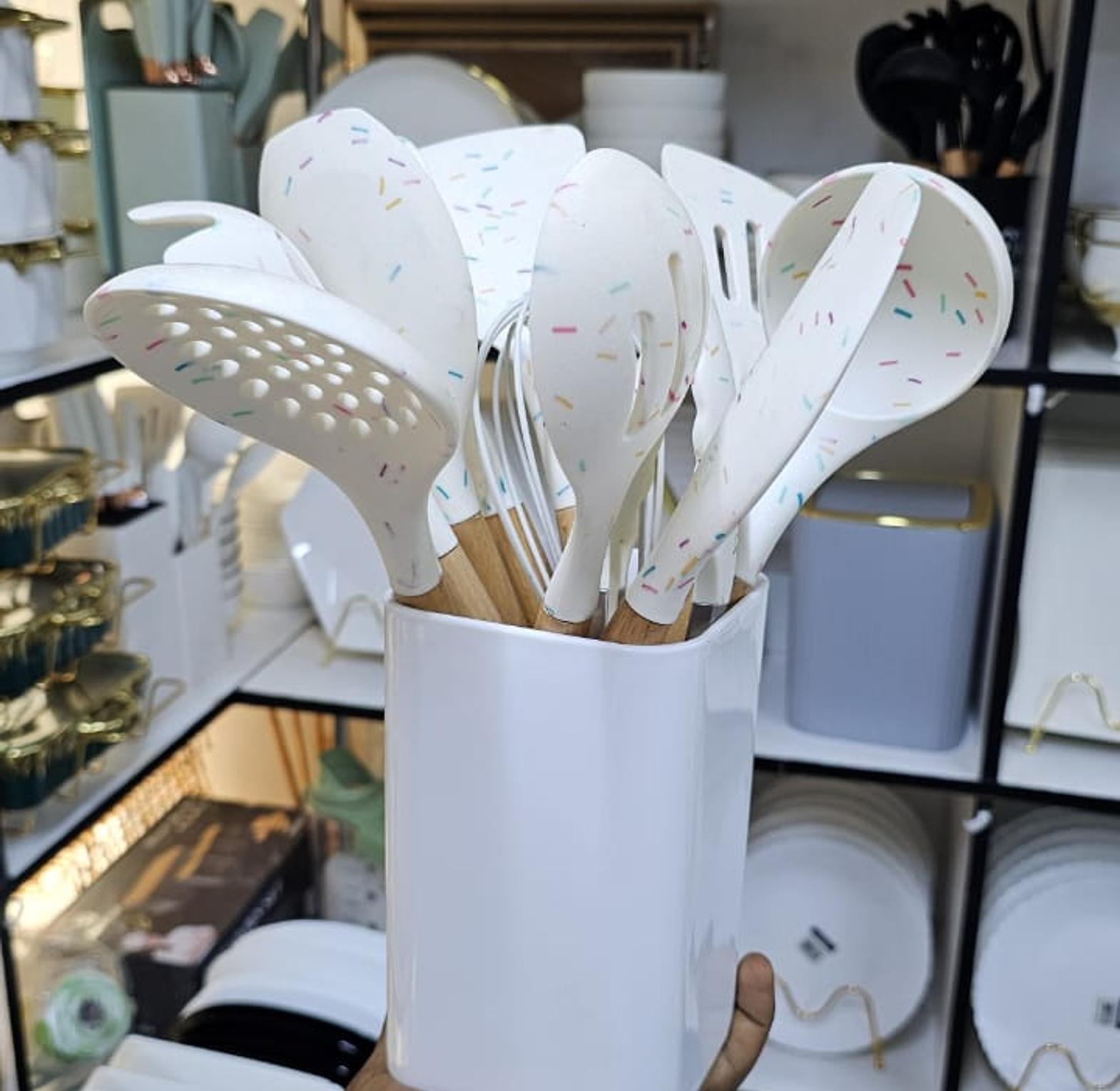 Elevate your cooking experience with the Unique White Marble Silicone Spoon Set, designed for both functionality and style. These heat-resistant silicone spoons feature a white marble pattern, combining elegance with practicality. The soft silicone material is gentle on cookware, preventing scratches while offering durability and flexibility for stirring, scooping, and serving. Perfect for everyday use, this set adds a chic touch to your kitchen while being easy to clean and maintain.