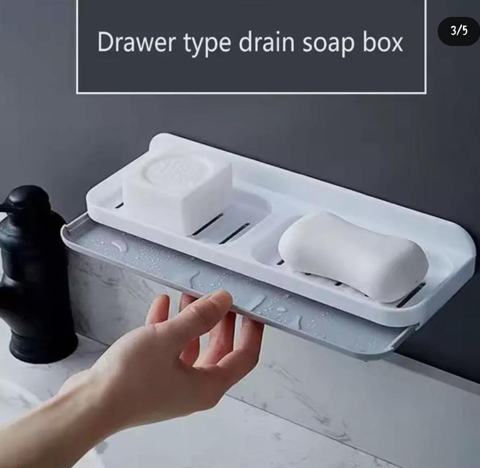Keep your bathroom neat and clutter-free with this wall-mounted self-adhesive soap dish storage organizer. Designed for easy installation without the need for drilling, this durable and waterproof holder securely sticks to smooth surfaces, protecting your walls while providing a convenient storage solution. Its well-ventilated design prevents soap from becoming soggy, ensuring longer-lasting freshness. Perfect for modern bathrooms, this space-saving organizer blends functionality with a minimalist aesthetic, offering a clean and organized look while keeping essentials within easy reach.