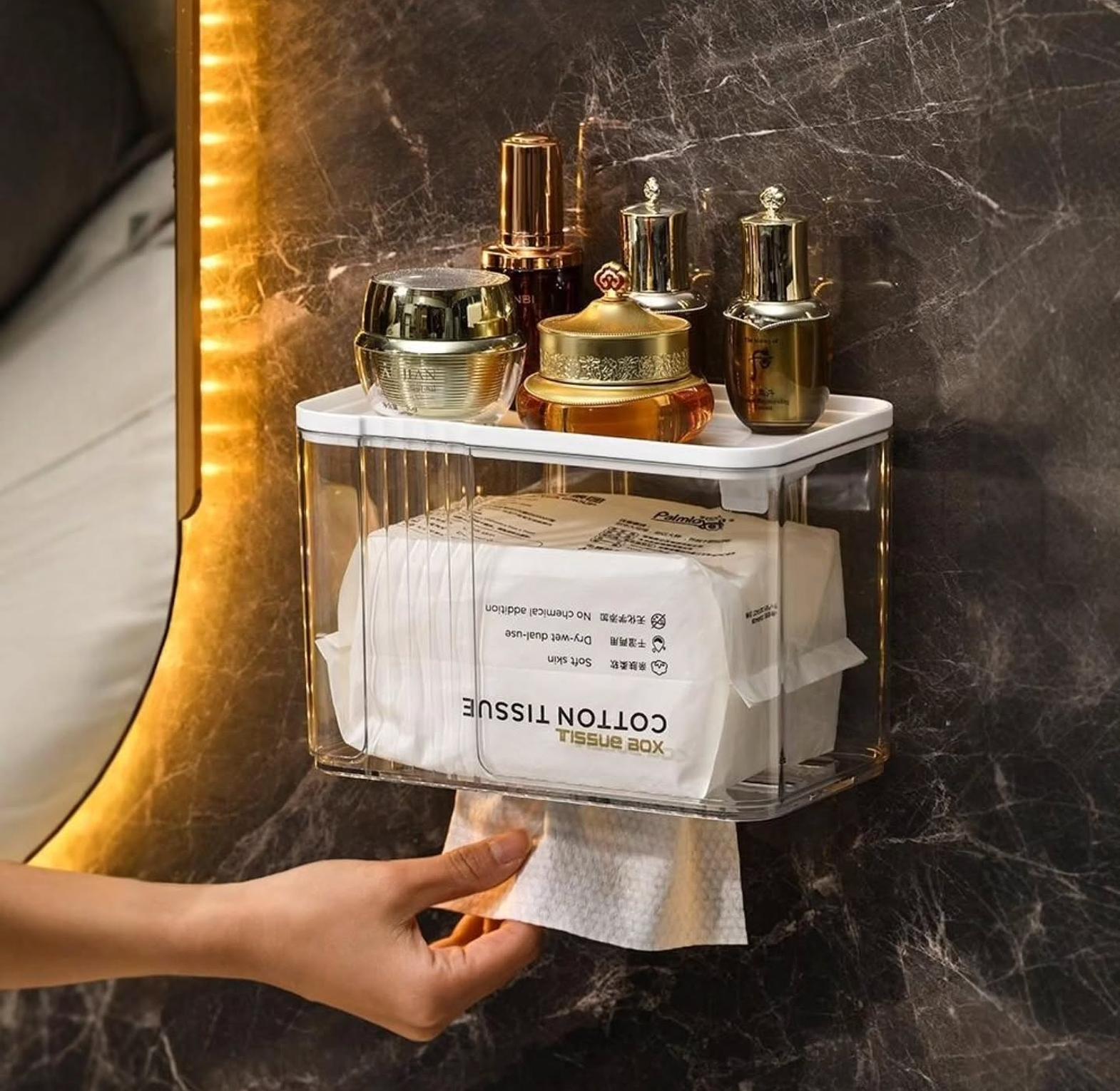 The Wall-Mounted Tissue Box is a modern and practical solution for organized, clutter-free spaces. Made with a waterproof design, it ensures tissues remain clean and dry, even in humid environments like bathrooms. Its strong, durable build comes with a convenient top storage tray for holding small essentials such as phones, wipes, or toiletries. Easy punch-free installation makes it renter-friendly, requiring no drilling while still offering a secure hold. Stylish and functional, this tissue box is perfect for bathrooms, kitchens, or living areas.