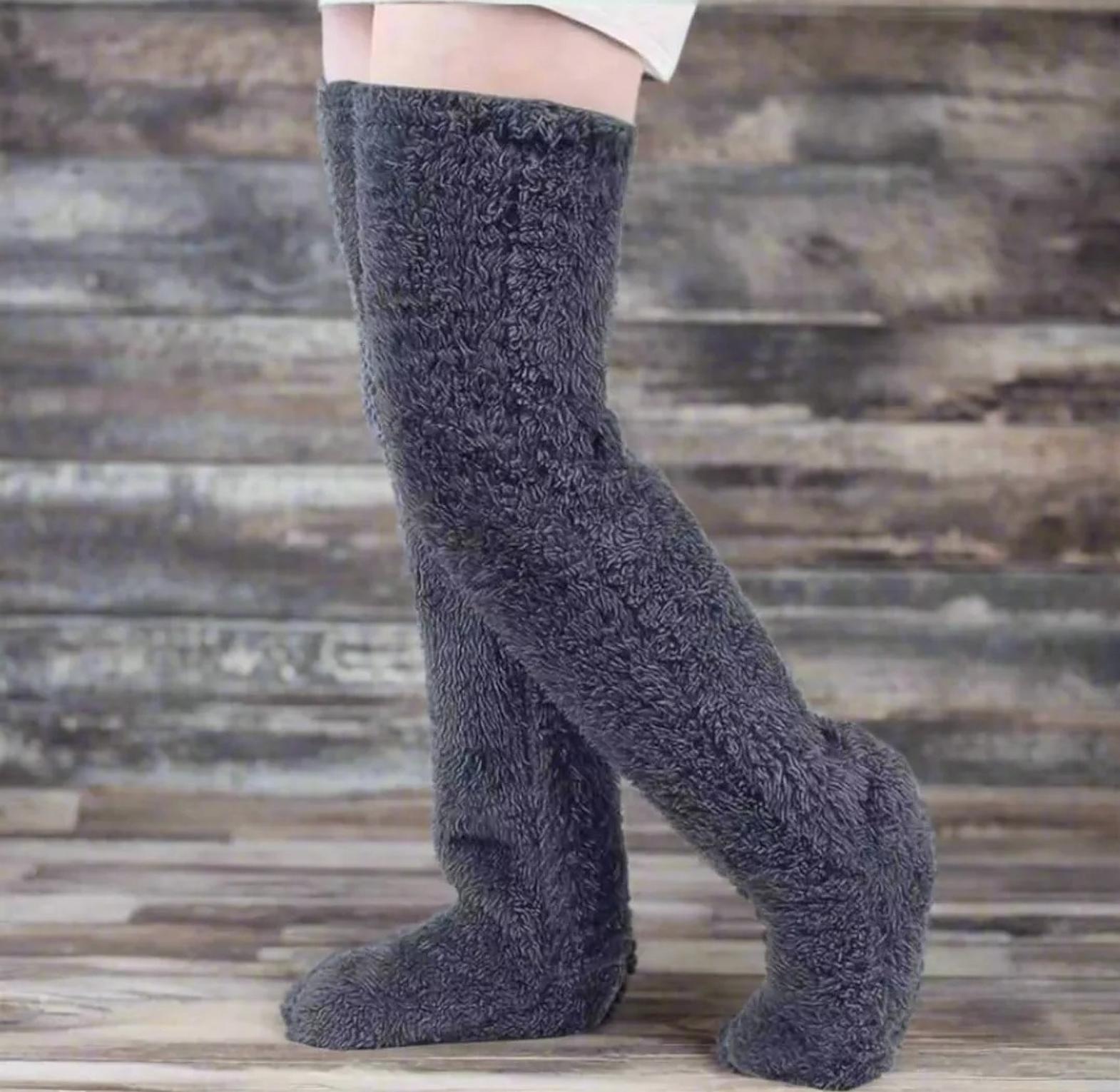 Embrace the ultimate in winter comfort with our Ultra-Soft Plush Thermal Leg Warmers, also perfect as luxurious knee-high socks. Crafted from an incredibly soft and fuzzy material (likely fleece or a plush knit, as depicted), these leg warmers are designed to provide exceptional warmth and coziness during the coldest months. Their thick, insulating fabric offers superior thermal retention, keeping your legs and feet wonderfully snug whether you're relaxing at home, sleeping, or adding an extra layer of warmth under boots.