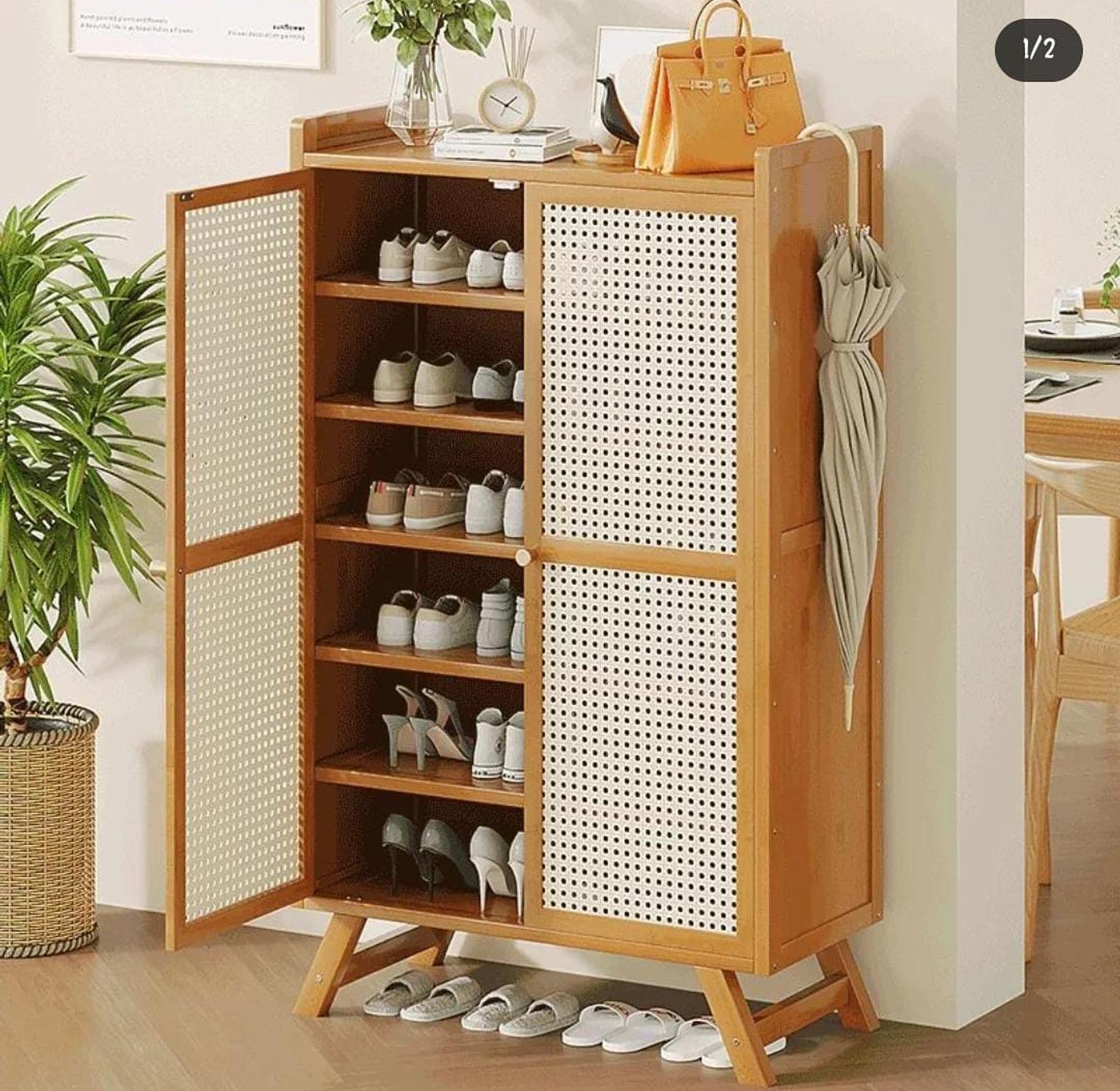 Bring both style and practicality to your entryway or closet with this wooden bamboo shoe rack/storage cabinet. Crafted from sustainable bamboo, this storage solution offers a natural, modern aesthetic that complements any home décor. With multiple tiers, it provides ample space to neatly organize shoes, boots, or accessories, while the sturdy design ensures durability for everyday use. Whether you have a small apartment or a spacious hallway, this versatile piece helps reduce clutter, keeping your shoes easily accessible and your space looking tidy. Its sleek, minimalist design is perfect for those who appreciate functionality without compromising on style, making it an ideal addition to any home.