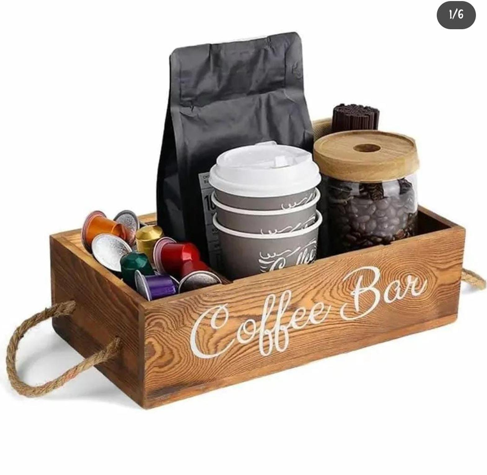 Enhance your coffee or tea station with this beautifully crafted wooden organizer, designed for both elegance and practicality. Featuring multiple compartments, it provides a dedicated space for tea bags, coffee pods, sugar packets, stirrers, and other essentials, keeping everything within easy reach. The natural wood finish adds a warm, rustic charm that blends seamlessly with any kitchen, office, or café decor. Durable and thoughtfully designed, this organizer helps maintain a clutter-free countertop while elevating your beverage-serving experience. Perfect for coffee lovers and tea enthusiasts, it brings convenience and sophistication to every sip.