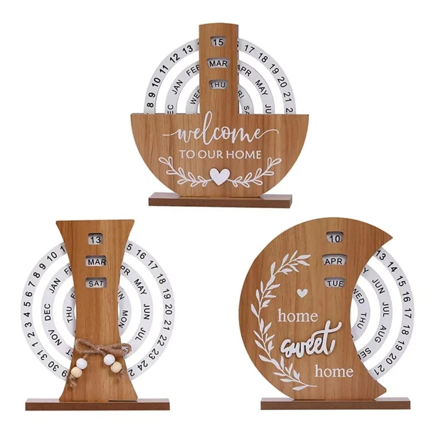 Available in a variety of charming designs, including a "welcome to our home" boat shape, a rustic bow design, and a "home sweet home" crescent, these calendars serve as beautiful home decoration pieces. Their natural wooden finish complements a wide range of interior styles, from farmhouse to contemporary. Beyond their aesthetic appeal, these office desk ornaments are a fantastic way to stay organized while adding a unique, interactive element to your daily routine. They are perfect for personal use or as a thoughtful and creative gift for friends, family, or colleagues. Enjoy the enduring beauty and functionality of this manual rotating turntable calendar.