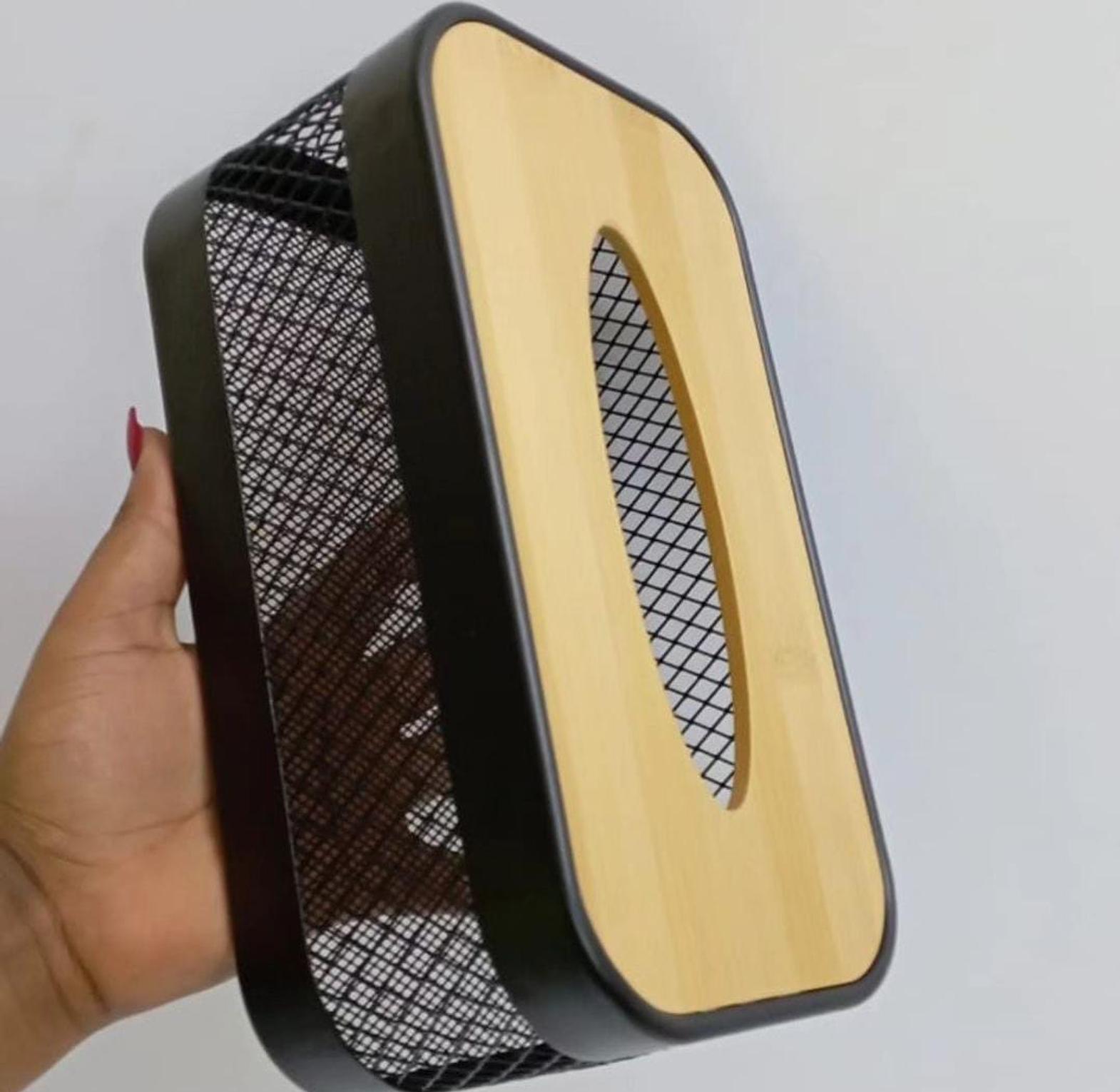 Our wooden top mesh serviette holder is a stylish and functional addition to any dining table or kitchen countertop. Featuring a sturdy wooden top, this holder provides a natural aesthetic that complements various decor styles, while the mesh sides offer visibility and easy access to your serviettes. Designed for durability and convenience, it keeps your napkins neatly organized and within reach during meals or gatherings. The lightweight yet robust construction ensures stability, making it ideal for both everyday use and special occasions. Elevate your dining experience with this charming serviette holder, which adds a touch of sophistication and tidiness to your table setting, making it a must-have accessory for any home.