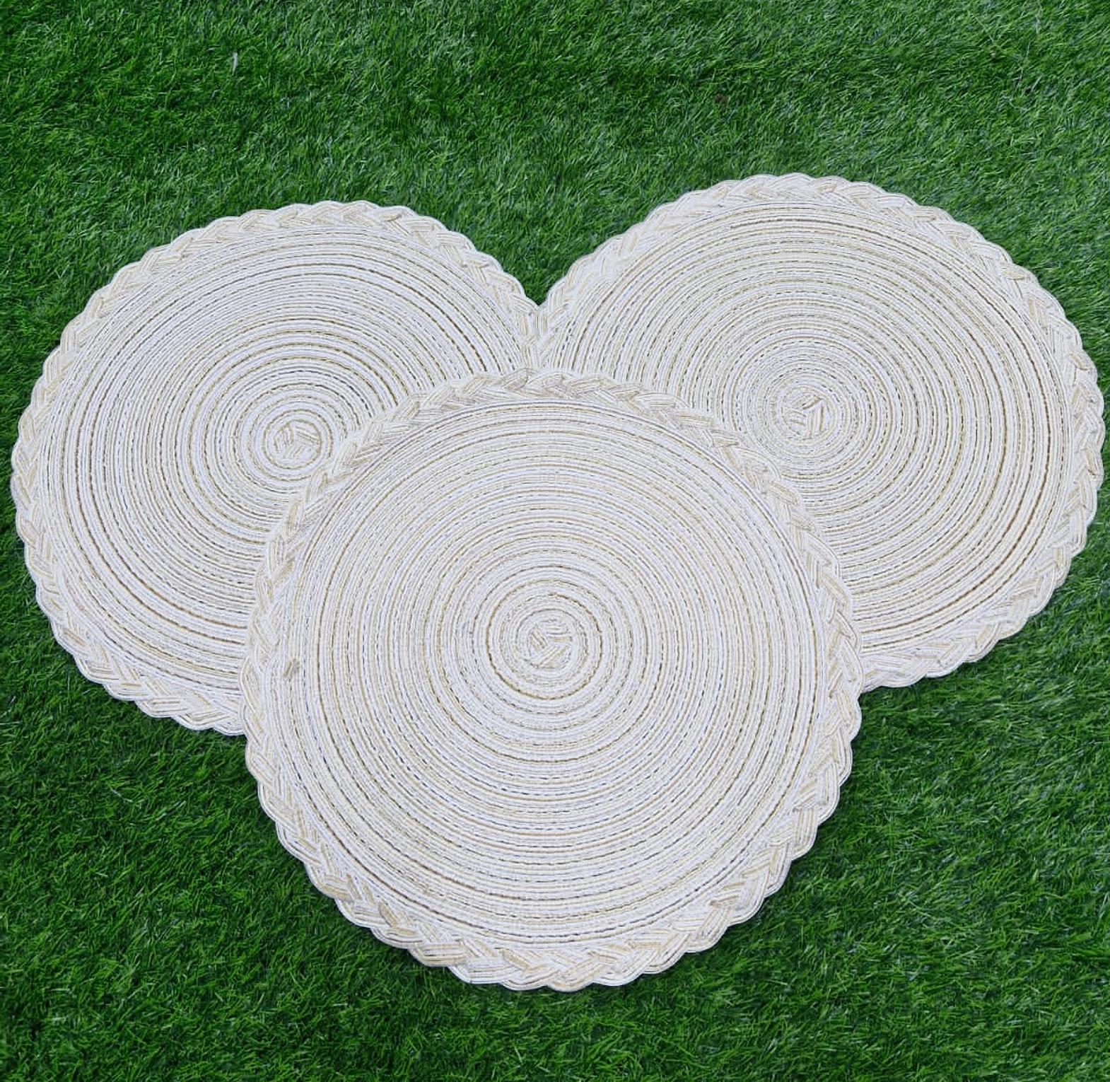 Elevate your table setting with our woven table top decor, featuring a set of classy and unique table mats. These beautifully crafted mats are designed to enhance both casual and formal dining experiences, offering a perfect blend of style and practicality. The intricate woven patterns add texture and sophistication, making them ideal for adding a chic touch to your dining table, coffee table, or even outdoor settings. Durable and easy to clean, these table mats provide a stylish and functional solution for protecting your surfaces while adding a decorative element to your home decor. Ideal for everyday use or special occasions.