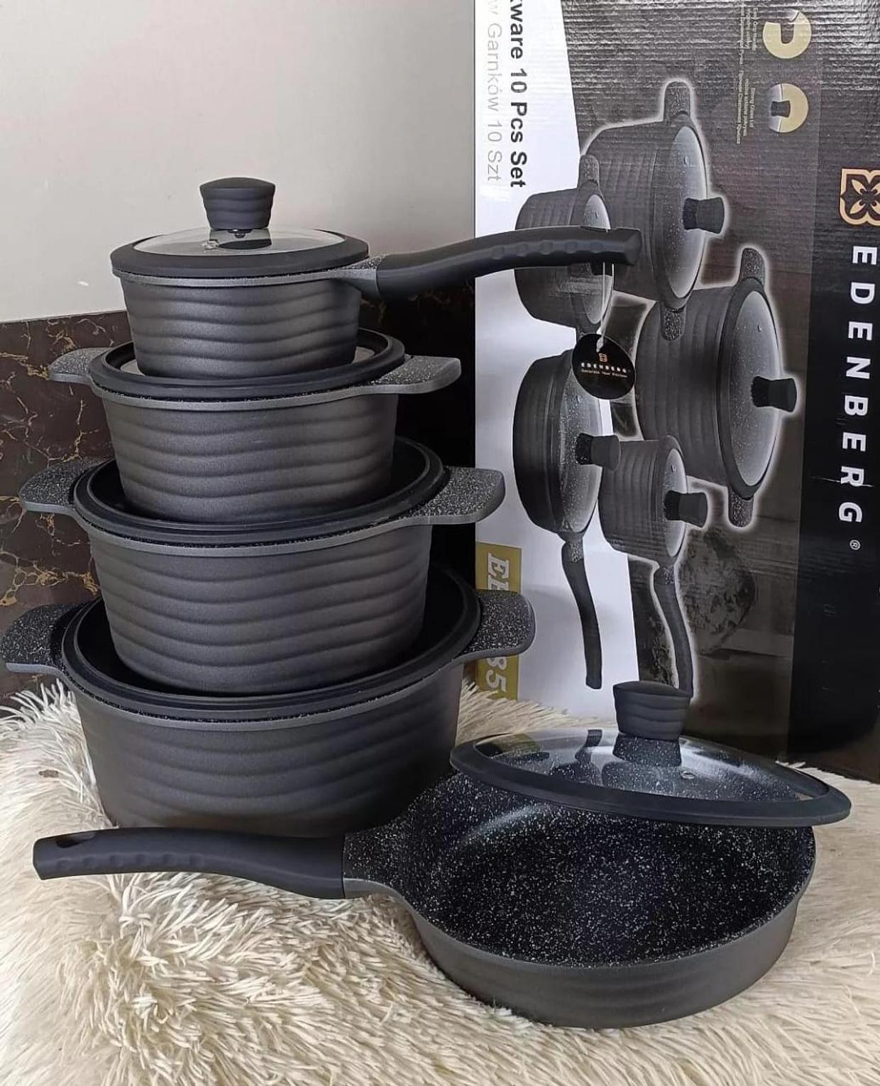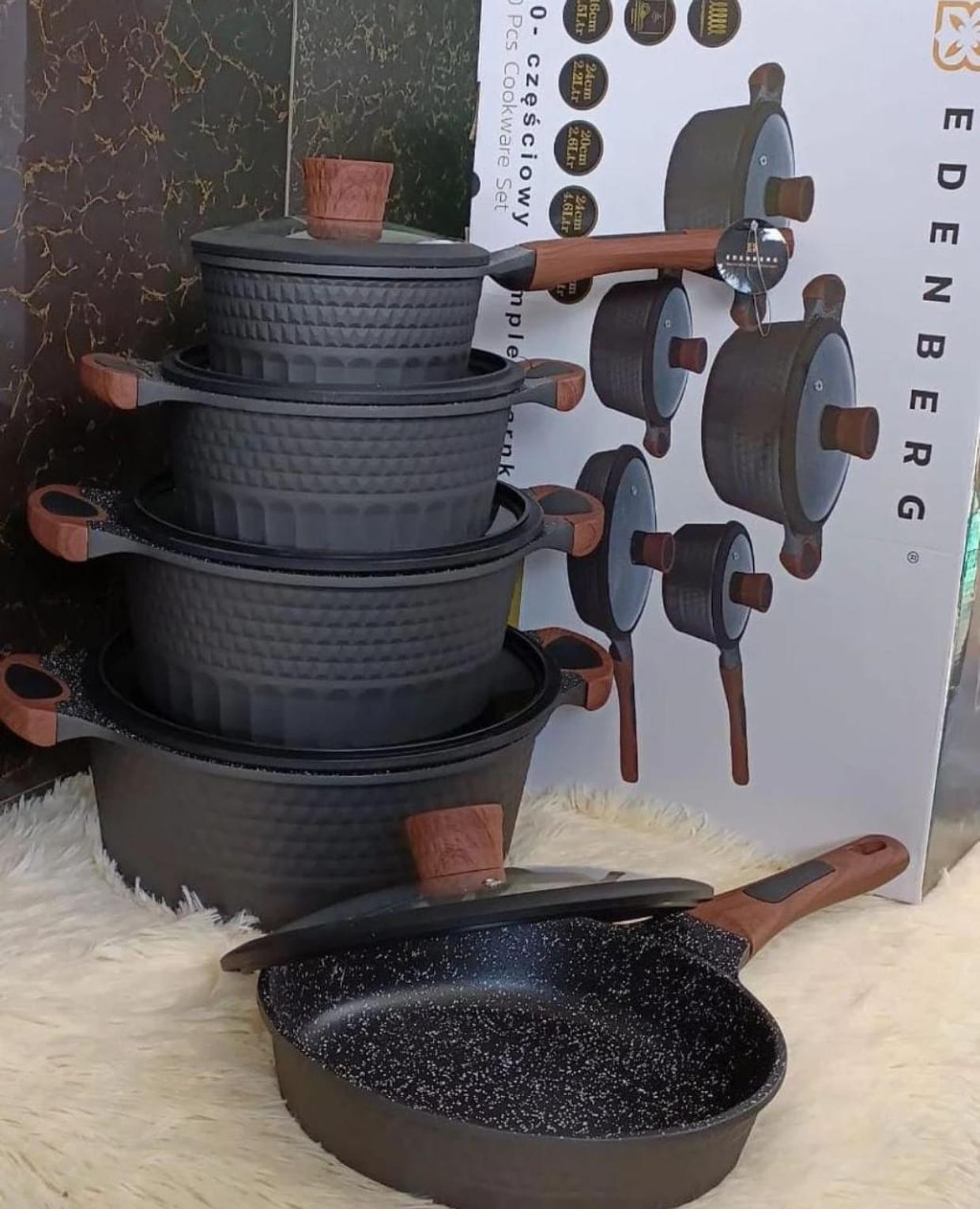 Experience the joy of cooking with our 10-piece high-quality Edenberg cookware set, expertly crafted to meet the needs of both novice cooks and seasoned chefs. Each piece is made from premium materials, ensuring superior heat distribution and retention for perfectly cooked meals every time. The set includes a variety of pots, pans, and lids, each designed with ergonomic handles for comfortable handling and a sleek, modern aesthetic that complements any kitchen decor. The non-stick interior makes for easy cooking and effortless cleanup, while the durable exterior ensures long-lasting performance. Whether you're simmering sauces, sautéing vegetables, or searing meats, this Edenberg cookware set is an essential addition to your kitchen, empowering you to create delicious dishes with confidence.