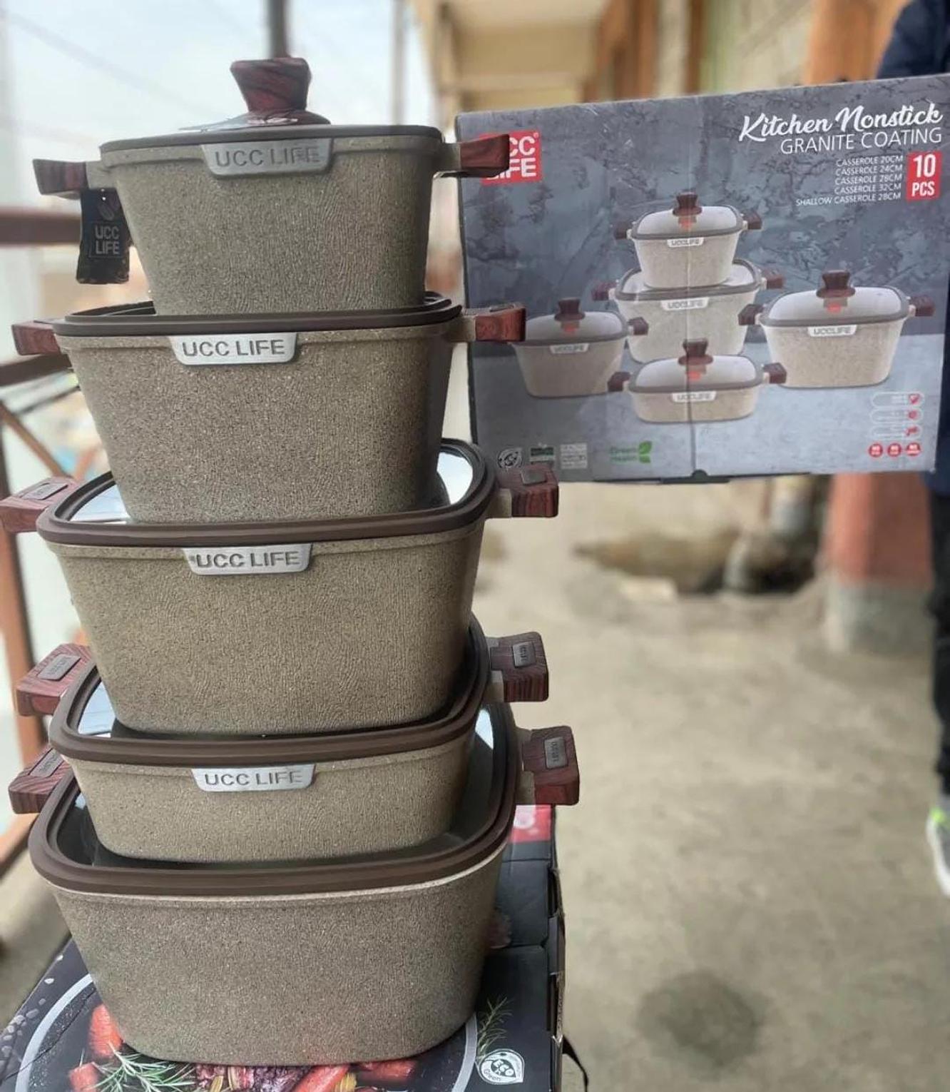 Cook with ease and style using the 10pcs Square UCC Life Cookware Set, designed for both everyday use and special occasions. Crafted from durable materials, this set features square-shaped pots and pans that not only provide a unique aesthetic but also ensure even heat distribution for efficient cooking. Whether you're sautéing, frying, or simmering, the non-stick coating allows for easy food release and effortless cleaning. With ergonomic handles and tempered glass lids, the set combines functionality and elegance, making it an ideal addition to any kitchen looking to blend modern design with superior performance.