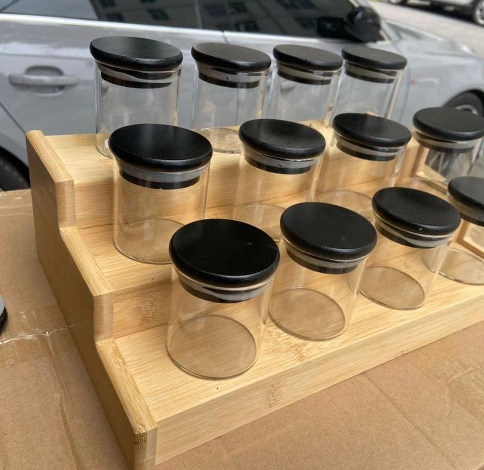 Elevate your kitchen organization with our 12-piece glass spice jar set, designed for both functionality and aesthetic appeal. Each jar is crafted from high-quality glass, providing a clear view of your spices while ensuring they remain fresh and flavorful. The elegant bamboo black lids not only add a modern touch but also create an airtight seal, keeping your spices protected from moisture and air. This set comes with a stylish stand that allows for easy access and convenient storage, making it a perfect addition to any countertop or pantry. With ample capacity, these jars are suitable for a variety of spices, herbs, and seasonings, allowing you to keep your culinary essentials organized and within reach. Enhance your cooking experience and bring a touch of elegance to your kitchen decor with this beautifully designed spice jar set, perfect for any cooking enthusiast.