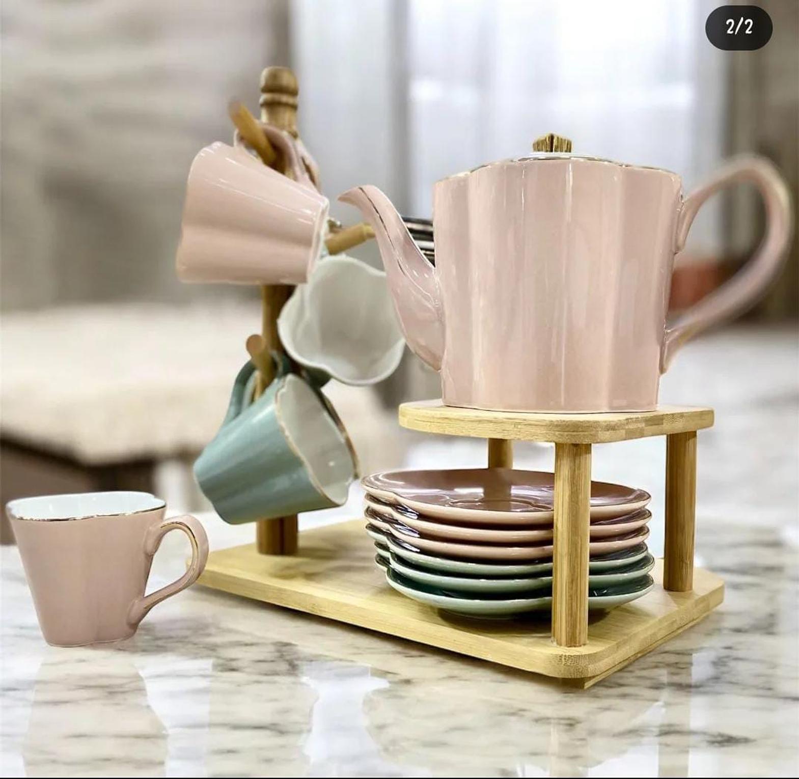 Elevate your tea-time experience with this exquisite 14-piece ceramic tea set, crafted for those who appreciate both beauty and functionality. Featuring a teapot, cups, saucers, and other matching accessories, this set exudes elegance with its smooth, high-quality ceramic finish. Designed to retain heat for the perfect brew, each piece offers a comfortable grip and a refined aesthetic, making it ideal for both casual and formal tea gatherings. Whether hosting guests or enjoying a peaceful cup alone, this timeless set adds charm and sophistication to every sip.