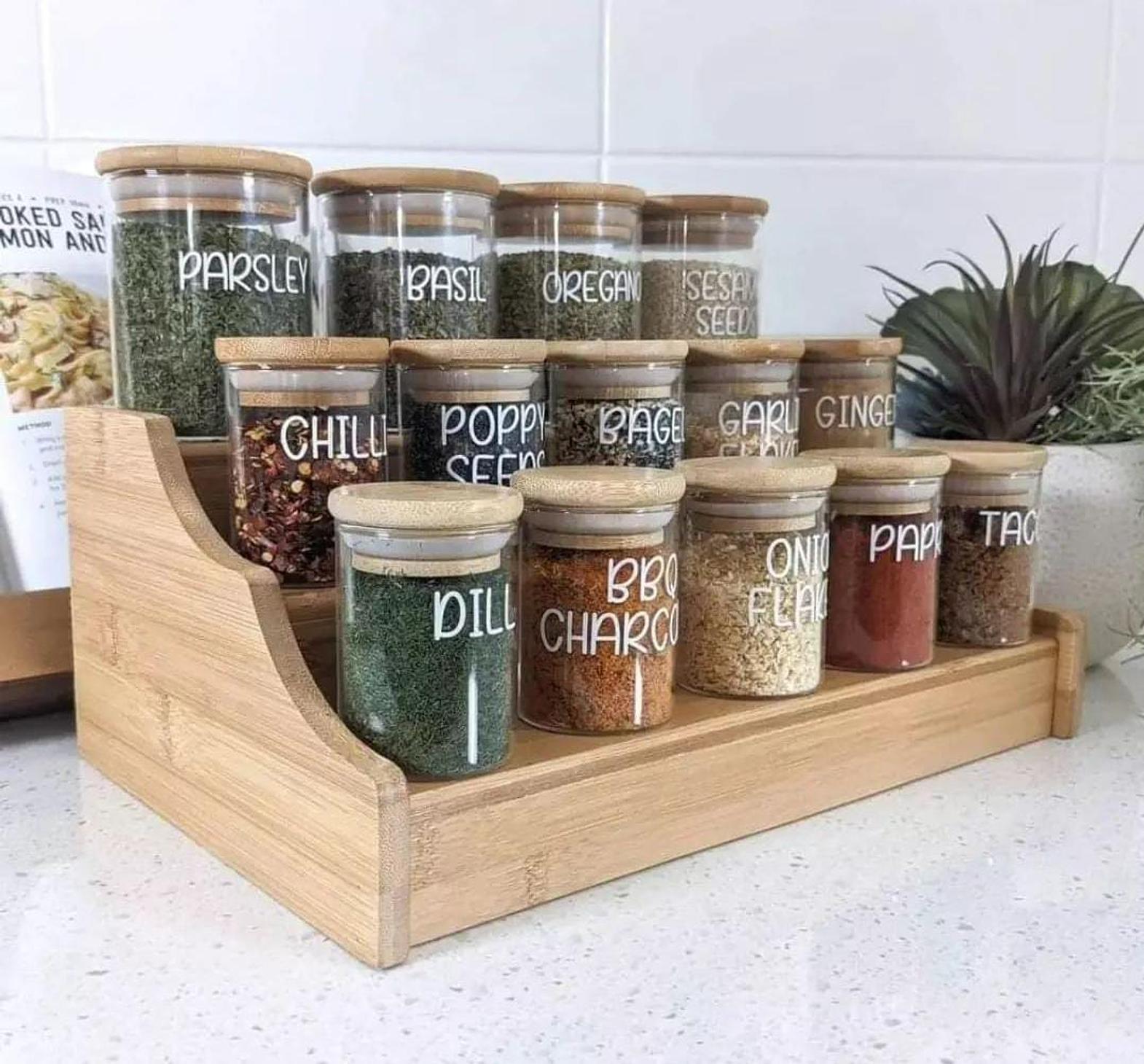 Elevate your kitchen organization with our 15-piece glass spice jar set, featuring a stunning wooden bamboo stand that combines elegance with functionality. Each glass jar is designed with a sleek silhouette, allowing you to easily see the vibrant colors and textures of your spices while ensuring they stay fresh with airtight lids. The bamboo stand not only provides a sturdy and attractive display but also saves valuable counter space, keeping your favorite seasonings within easy reach. Perfect for herbs, spices, and even loose teas, this set adds a touch of modern charm to any kitchen decor. Whether you're a seasoned chef or a cooking enthusiast, this spice jar set is an essential tool for maintaining an organized and inspiring culinary workspace.