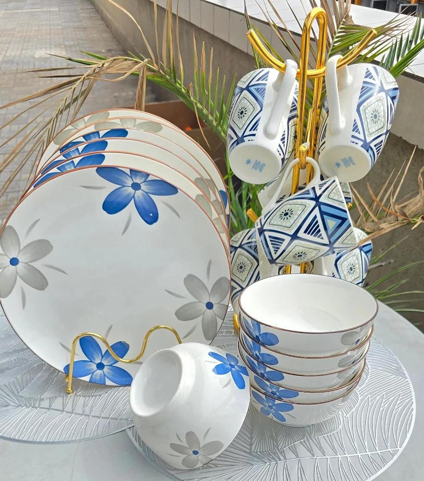 Bring elegance and practicality to your dining experience with the 18PC Blue Combo Dinner Set, designed to offer everything you need for a complete meal. Featuring six dinner plates, six side plates, and six bowls, each piece is carefully crafted from durable, high-quality materials with a rich blue hue that enhances any table setting. Perfect for casual family dinners or more formal gatherings, this set brings a refreshing splash of color to your table while maintaining an effortlessly stylish look. The set is designed for both everyday use and special occasions, ensuring your meals are always served in style.