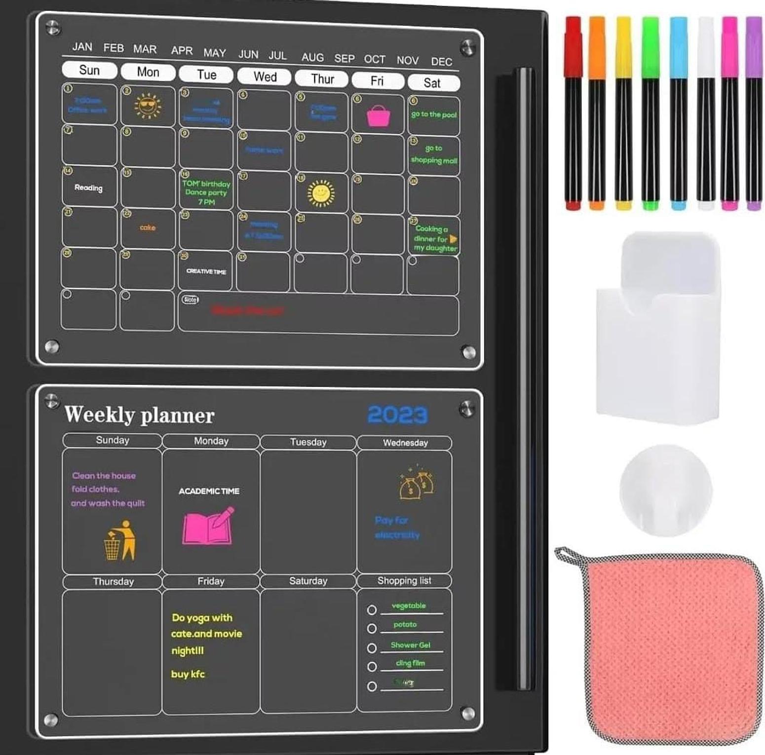 Keep track of your tasks, appointments, and meals effortlessly with our 2-piece set Magnetic Monthly/Weekly Fridge Planner. Designed to attach securely to any metal surface, these planners offer a convenient way to organize your week or month at a glance. The monthly planner allows for long-term scheduling, while the weekly planner helps you focus on day-to-day tasks and events. The sleek, magnetic design ensures that the planners stay in place without taking up extra space, and their wipeable surface makes it easy to update plans as needed. Ideal for busy families or professionals, this set is a practical addition to your kitchen or office, helping you stay organized and on top of your commitments.