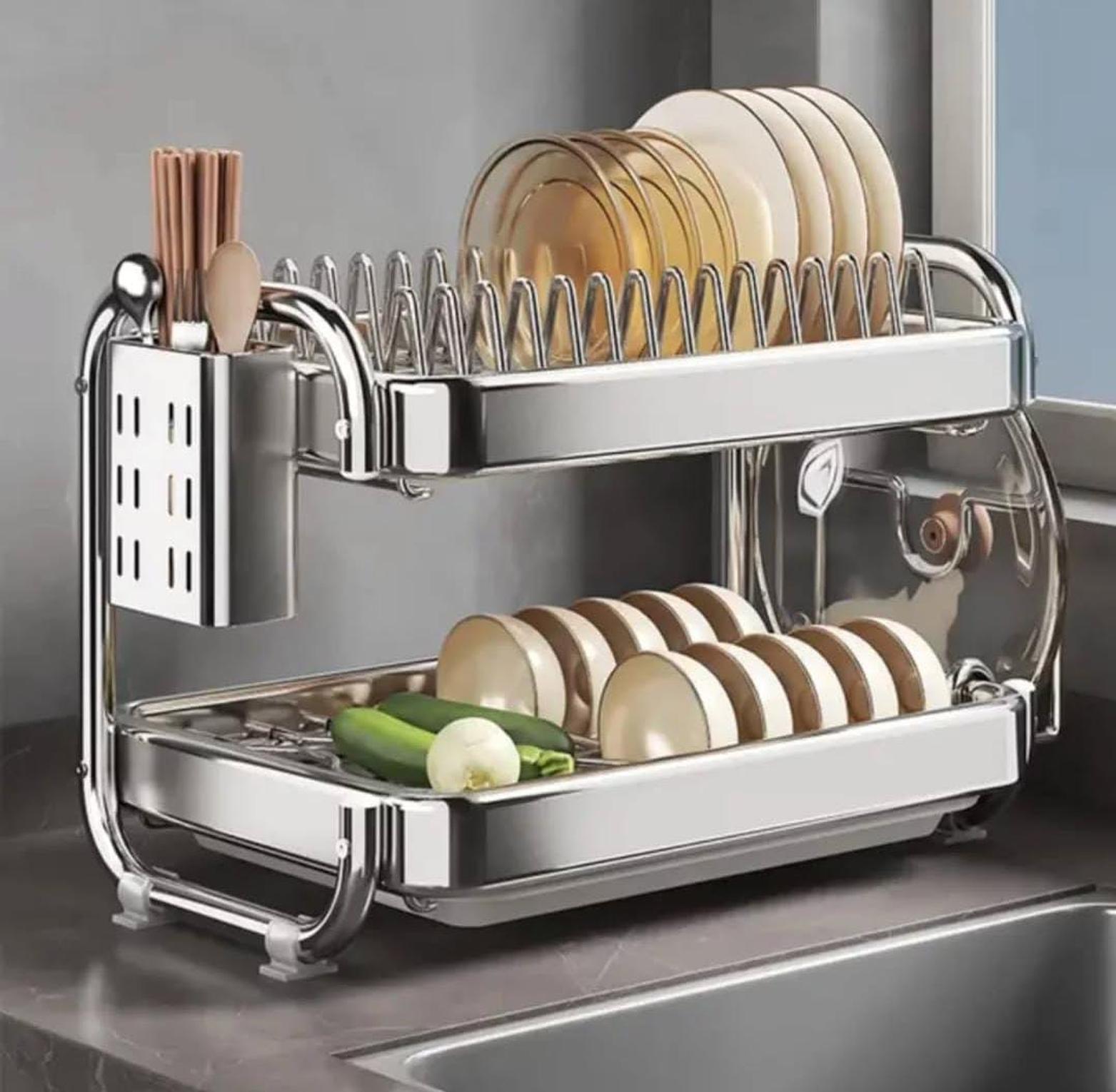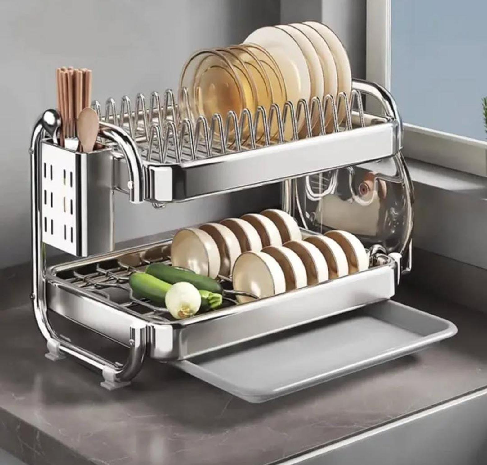Our 3-Tier Kitchen Chrome-Plated Dish Rack is the ultimate solution for drying dishes with ease and style. Constructed from durable 201SS material, this rack offers three spacious tiers to accommodate a variety of dishes, glasses, and utensils. The sleek chrome finish not only ensures long-lasting durability but also adds a modern touch to your kitchen. The included drain tray helps to catch excess water, keeping your countertop clean and dry. Perfect for small to medium-sized kitchens, this dish rack makes it easy to store and dry your dishes while maintaining a tidy and organized space.