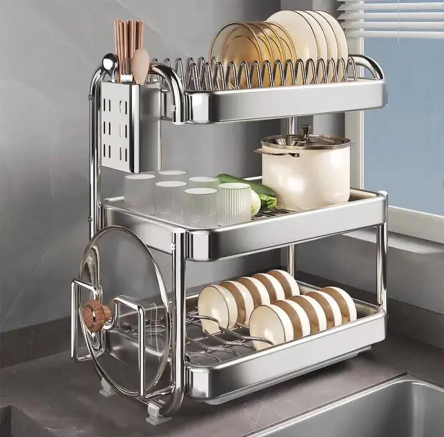 Maximize your kitchen’s storage and drying space with our 3-Tier Kitchen Chrome Plated Dish Rack, designed for ultimate functionality and style. Constructed from high-quality 201SS material, this dish rack is not only durable and rust-resistant but also sleek and modern, blending seamlessly with any kitchen decor. The three-tier design provides ample space for dishes, glasses, and utensils, while the built-in drain tray ensures that excess water is easily collected, keeping your countertops dry and tidy. Whether you're washing a few items or a full load, this practical dish rack makes drying your kitchenware more efficient and organized.