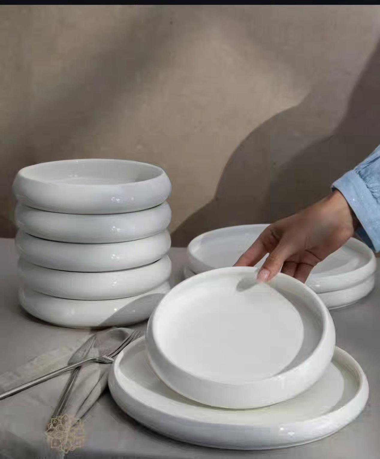 The Premium 24-Piece White Ceramic Dinner Set is the epitome of modern sophistication for your dining occasions. This unique, stylish tableware collection includes everything needed to set a complete table for six, ensuring elegance and uniformity in your presentation. The set comprises 6 generously sized Dinner Plates, 6 versatile Side Plates, 6 deep Salad or Pasta Bowls, and 6 perfectly proportioned Soup Bowls. Crafted from high-quality ceramic, each piece features a smooth, refined finish and a clean white aesthetic that allows your culinary creations to take center stage. This durable dinnerware is designed for daily use while maintaining a premium look, making it an essential upgrade for homeowners looking to make a statement with simple elegance and timeless appeal.