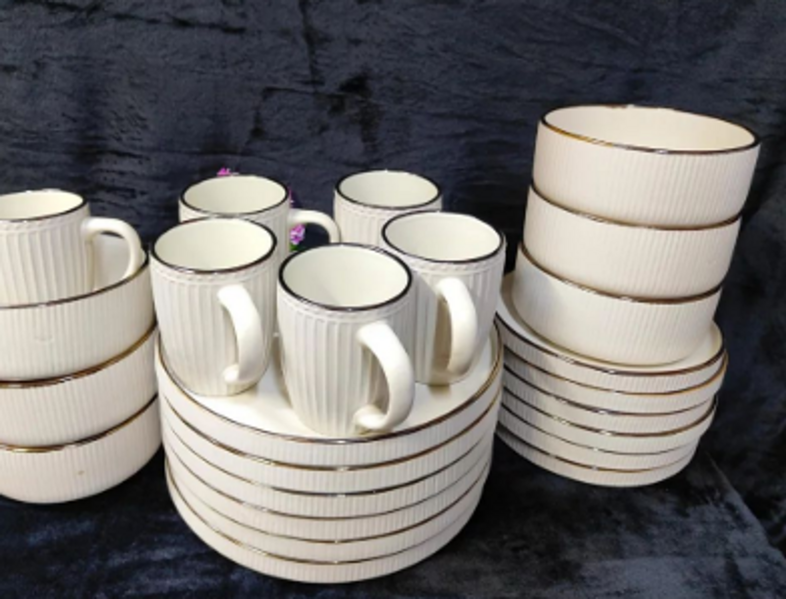 Introducing our 24-Piece Ceramic Dinner Set, a beautifully crafted collection designed to bring style and sophistication to your dining table. This set includes everything you need to serve a complete meal for family gatherings or entertaining guests, with plates, bowls, and mugs all crafted from high