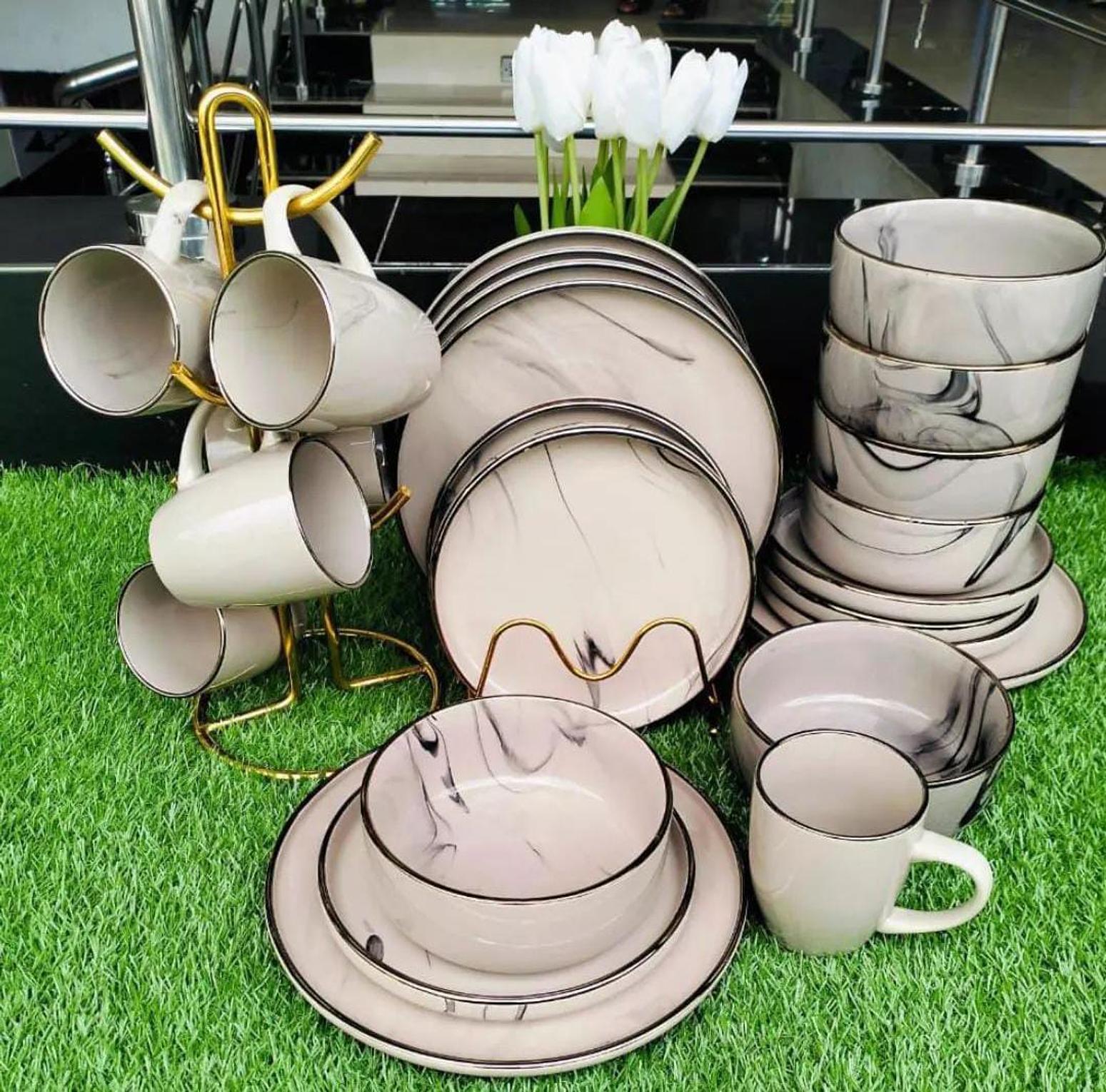 Our 24-piece dinner set is the perfect addition to any kitchen, crafted to enhance your dining experience with its elegant design and practical functionality. This comprehensive set includes dinner plates, salad plates, bowls, and mugs, providing everything you need to host family meals or entertain guests. Made from high-quality, durable materials, each piece is designed to withstand everyday use while maintaining its beauty. The timeless aesthetic complements various table settings, making it suitable for both casual dining and special occasions. Easy to clean and dishwasher-safe, this dinner set ensures convenience without compromising on style. Whether you’re enjoying a quiet meal at home or hosting a festive gathering, this 24-piece dinner set adds a touch of sophistication to every dining experience.