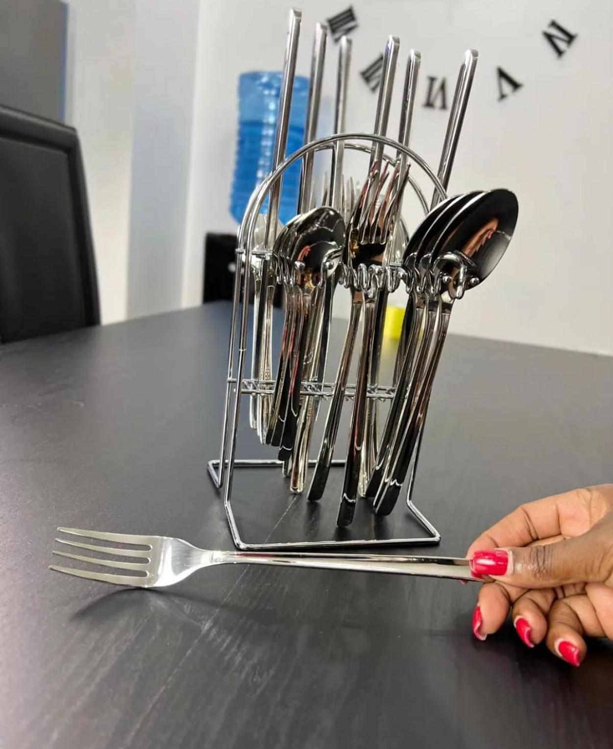This 24-piece high-quality cutlery set offers a sophisticated touch to any dining occasion, combining both function and style. Crafted from durable stainless steel, each piece is designed to resist tarnishing and maintain its shine over time, ensuring long-lasting use. The set includes all essential utensils, such as dinner knives, forks, spoons, and dessert pieces, making it versatile for casual meals or formal gatherings. Its sleek, modern design complements any table setting, adding a refined elegance to your dinner parties or daily meals. With a polished finish and comfortable grip, this cutlery set makes each dining experience both stylish and practical.