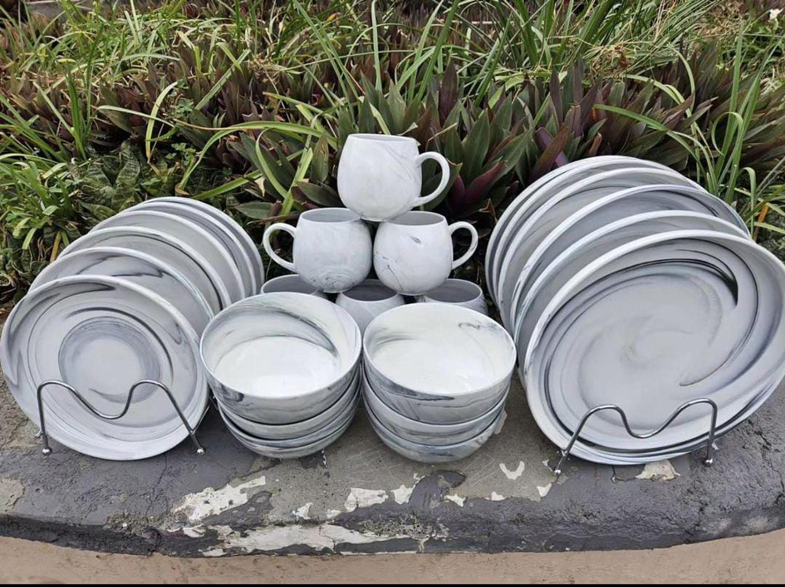 Transform your table setting with our stunning 24-piece marble textured ceramic dinner set, an exquisite collection that brings sophistication and style to your dining experience. This comprehensive set includes dinner plates, salad plates, and bowls, all featuring a beautiful marble design that adds a touch of luxury to any meal.