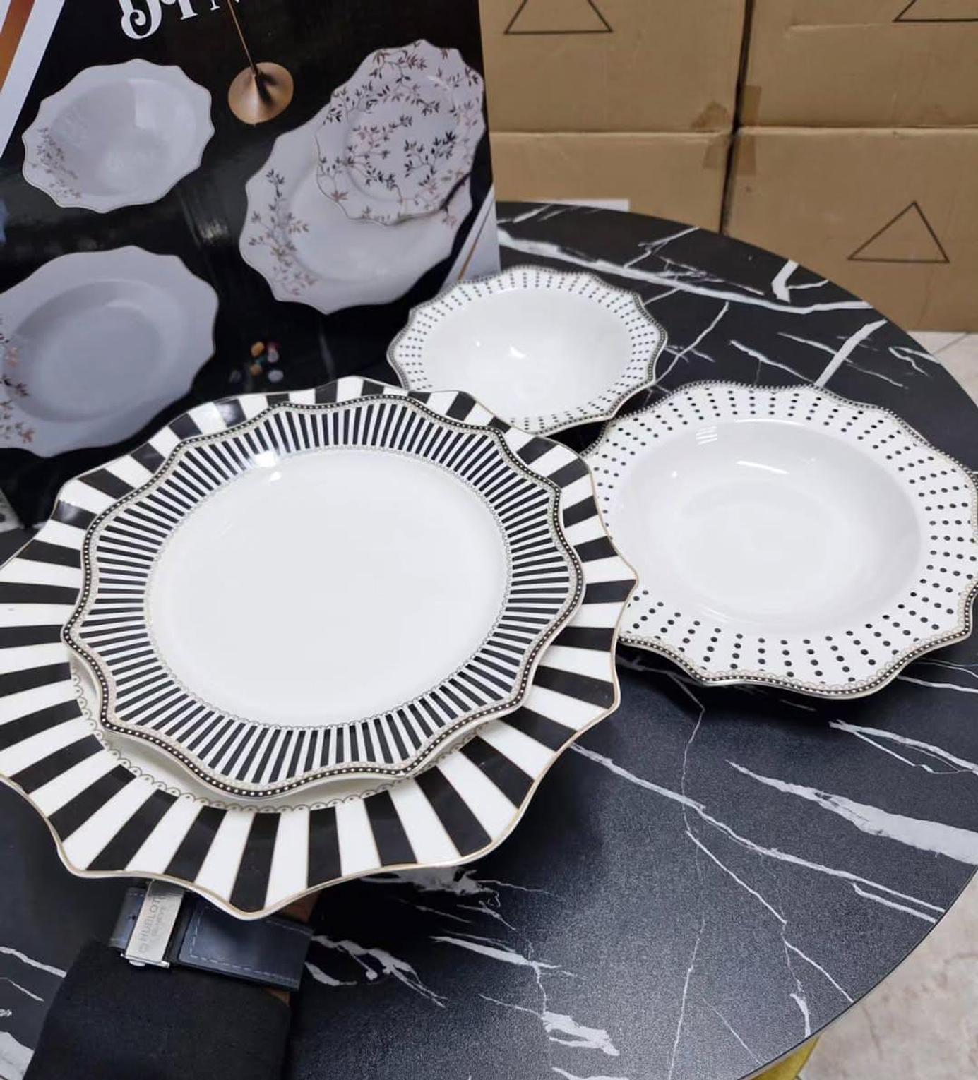 Elevate your dining occasions with our exquisite 24-piece Porcelain Dinner Set, designed for both everyday use and special celebrations. Crafted from high-quality porcelain, each piece is beautifully refined, offering a timeless look with a delicate yet durable finish. The set includes everything you need for a complete meal: dinner plates, side plates, bowls, and mugs, all thoughtfully designed to create a seamless dining experience. The smooth, glossy finish adds a touch of sophistication to any table, while the classic design ensures versatility, complementing various themes and occasions. Whether you're hosting a dinner party or enjoying a family meal, this porcelain dinner set combines beauty with practicality, making every meal feel special.