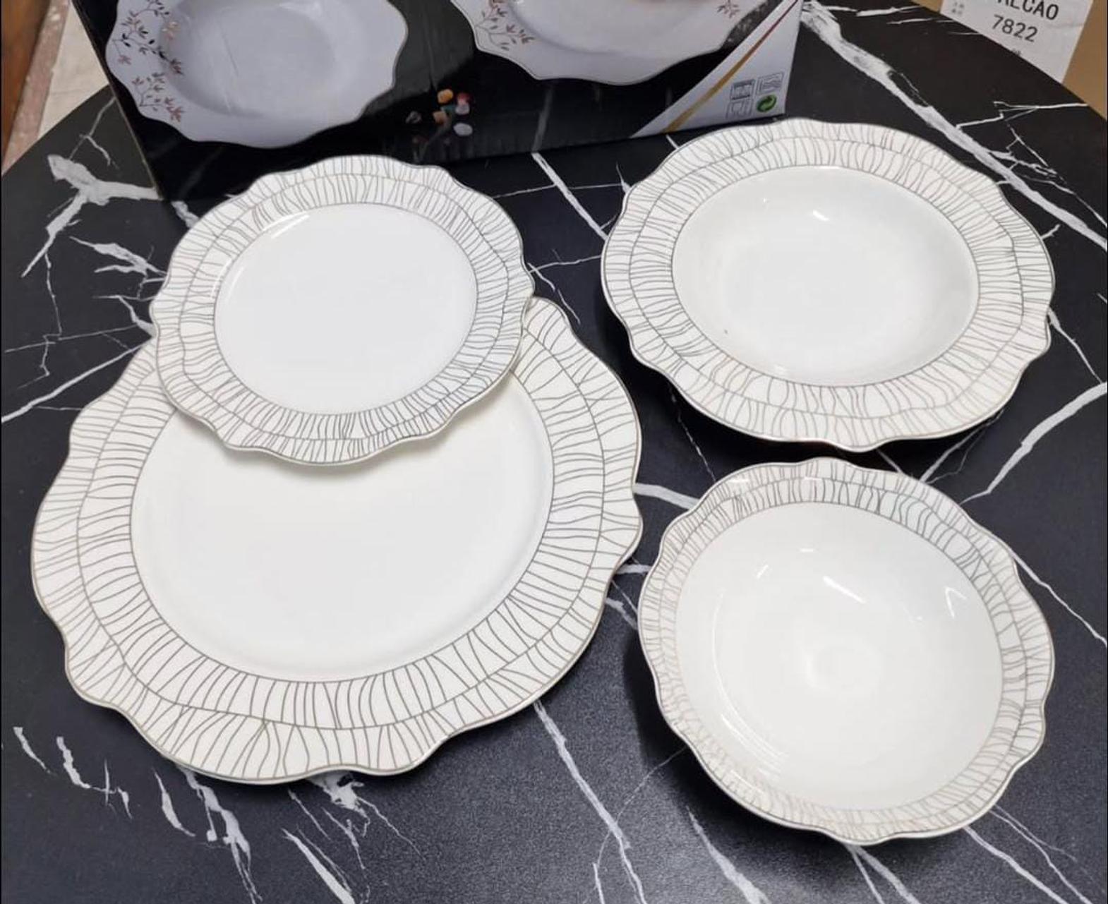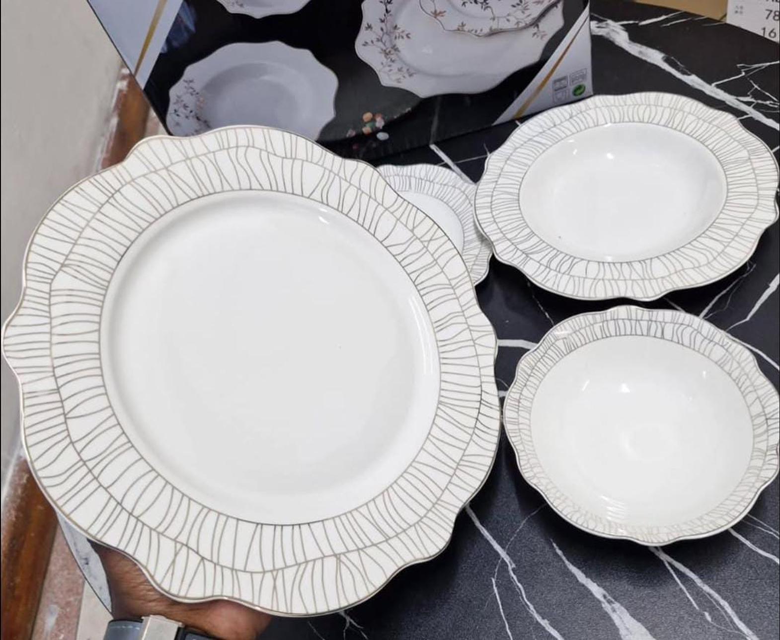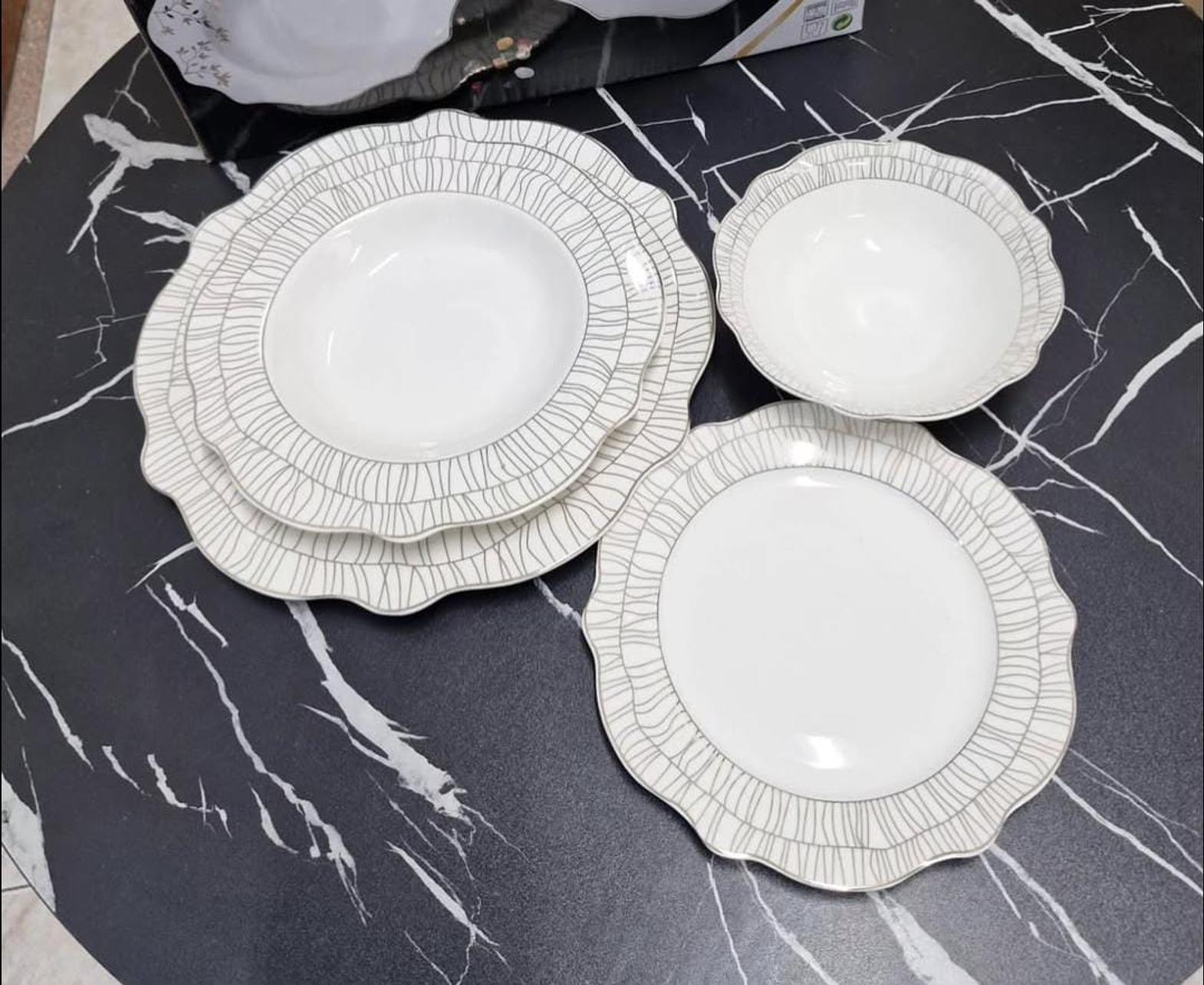 Elevate your dining experience with our 24-piece Porcelain Dinner Set, crafted to bring both style and durability to your table. Made from high-quality porcelain, this set includes dinner plates, side plates, bowls, and mugs, each designed with a classic finish that complements any table setting. The smooth, glossy texture not only adds sophistication but also makes cleaning effortless. Whether you’re hosting a dinner party or enjoying a family meal, the elegant design and versatility of this set make it the perfect addition to any occasion. Ideal for both casual dining and formal events, this dinner set combines beauty with functionality for every meal.