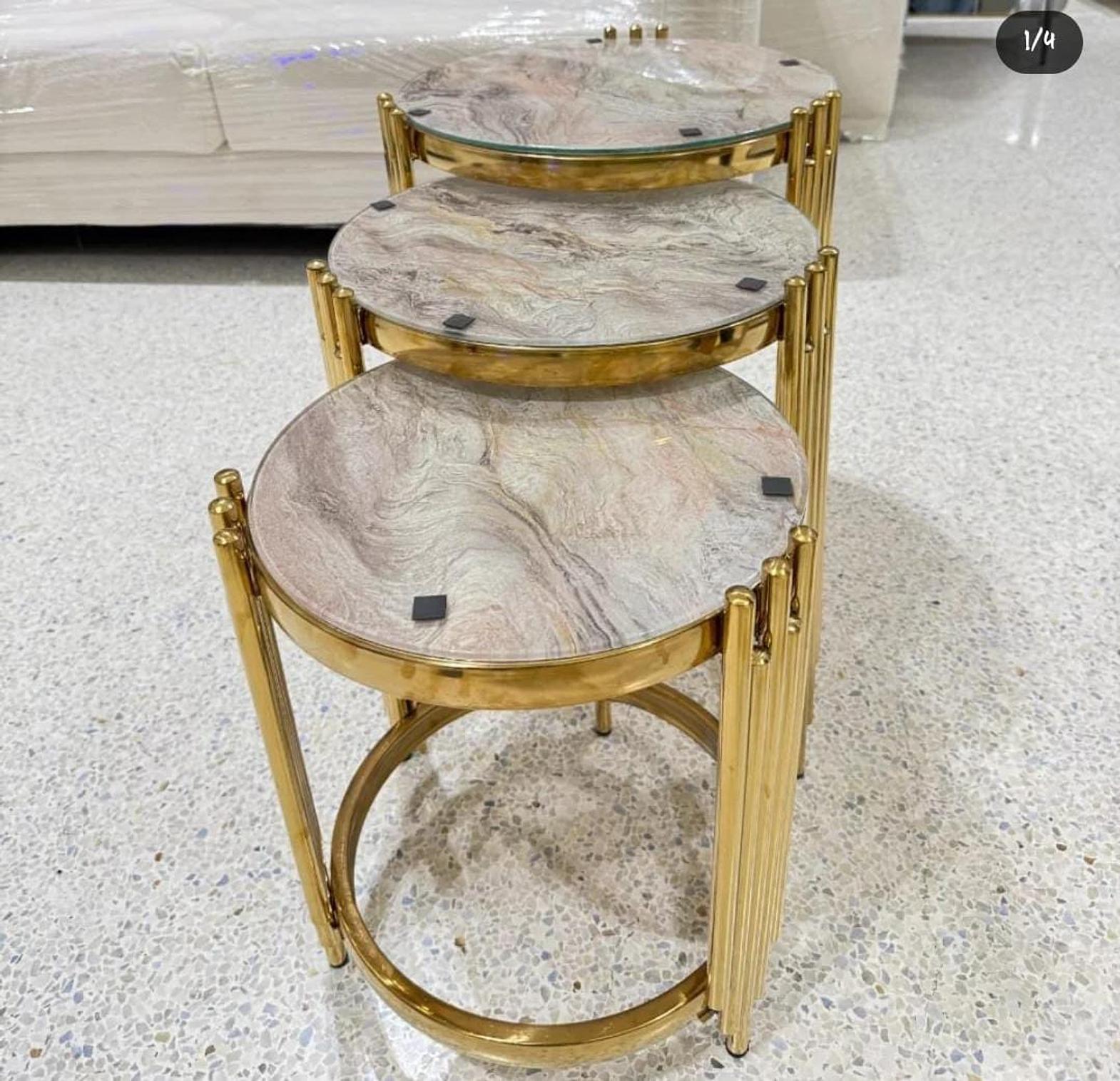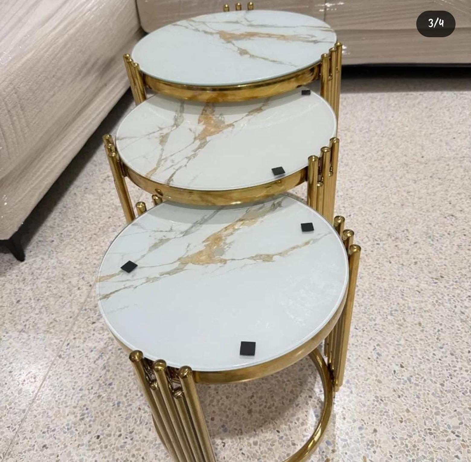 Enhance your home with this sleek and practical 3-in-1 coffee table set, designed for both aesthetics and efficiency. Featuring three nesting tables that can be used together or separately, this set adapts effortlessly to your needs—whether for entertaining guests, displaying décor, or maximizing space. Crafted from durable materials with a stylish finish, it seamlessly complements modern, minimalist, and contemporary interiors. The stackable design allows for easy storage when not in use, making it perfect for small apartments, lounges, or office spaces. A perfect blend of elegance and practicality, this coffee table set is a must-have for any dynamic living area.