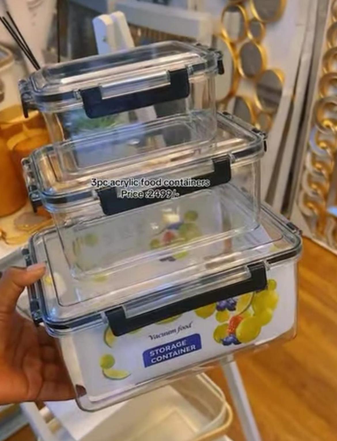 Streamline your pantry or countertop with our 3-piece acrylic food container set, designed to keep ingredients fresh and easily accessible. Made from durable, crystal-clear acrylic, these containers provide a sleek, modern look while allowing you to quickly identify contents. Each container is equipped with an airtight lid that seals in freshness, making them ideal for storing grains, snacks, or baking essentials. Stackable and space-saving, this set brings both practicality and elegance to your kitchen organization. Whether used in the pantry or displayed on the counter, these containers are a functional, stylish solution for a well-ordered kitchen.