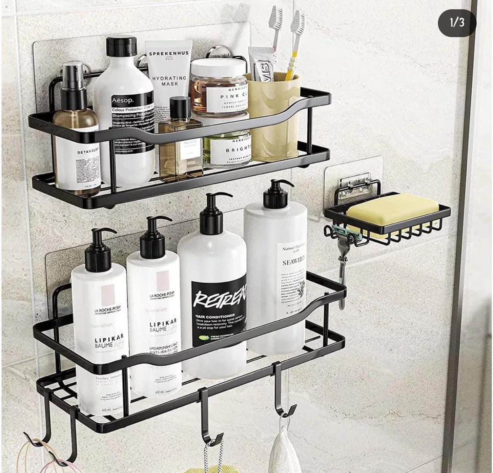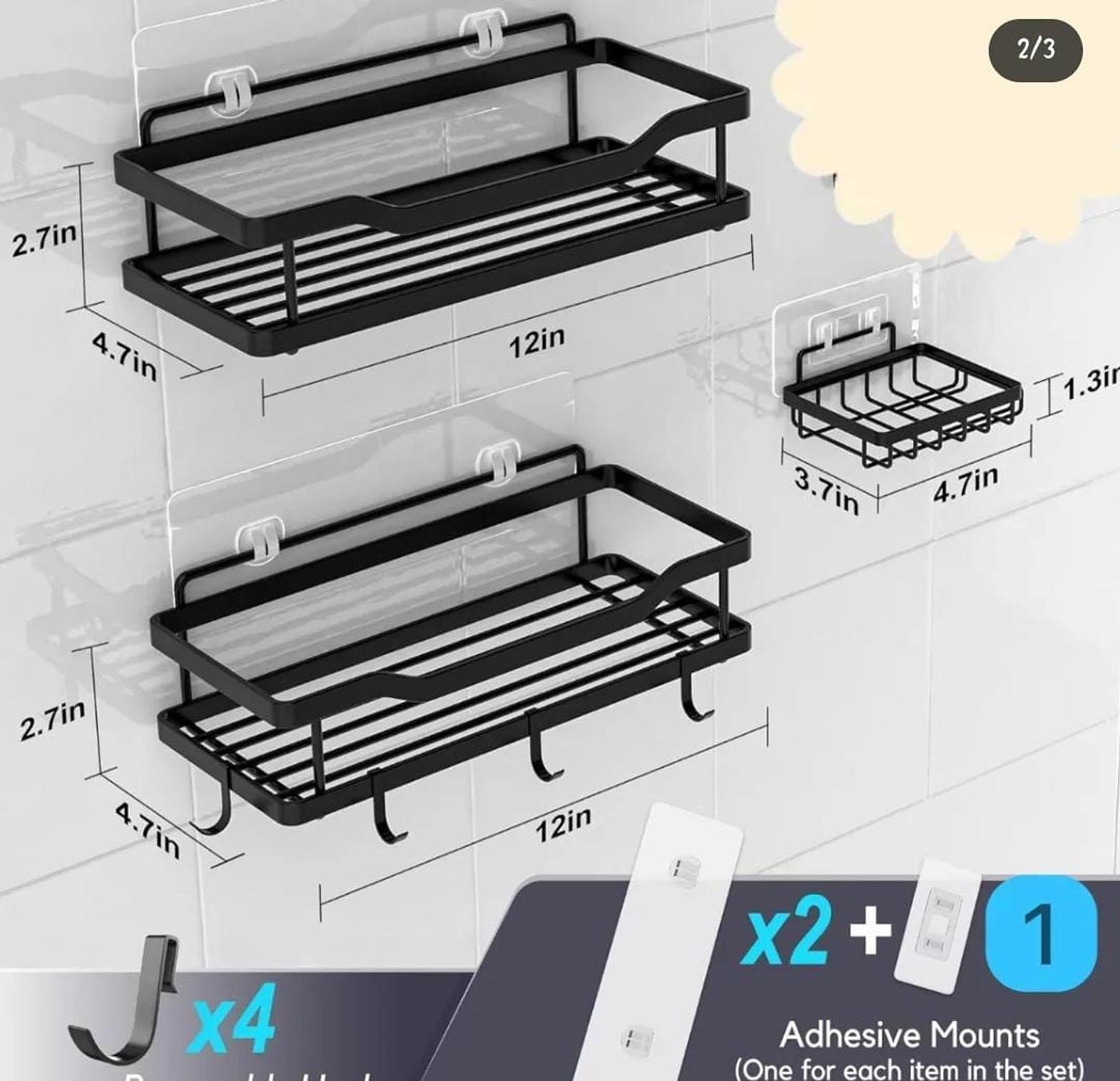 Transform your bathroom space with this 3-piece shower caddy shelf set, designed to keep your essentials neatly arranged and within reach. Crafted from high-quality, rust-resistant materials, these shelves provide sturdy support for shampoos, soaps, lotions, and other toiletries. The open-drain design ensures quick drying, preventing water buildup and mold growth. Easy to install with strong adhesive or screw-mounted options, these organizers offer a secure, space-saving solution without damaging walls. Perfect for modern, minimalist, or spa-like bathrooms, this set combines functionality with a sleek, stylish touch.