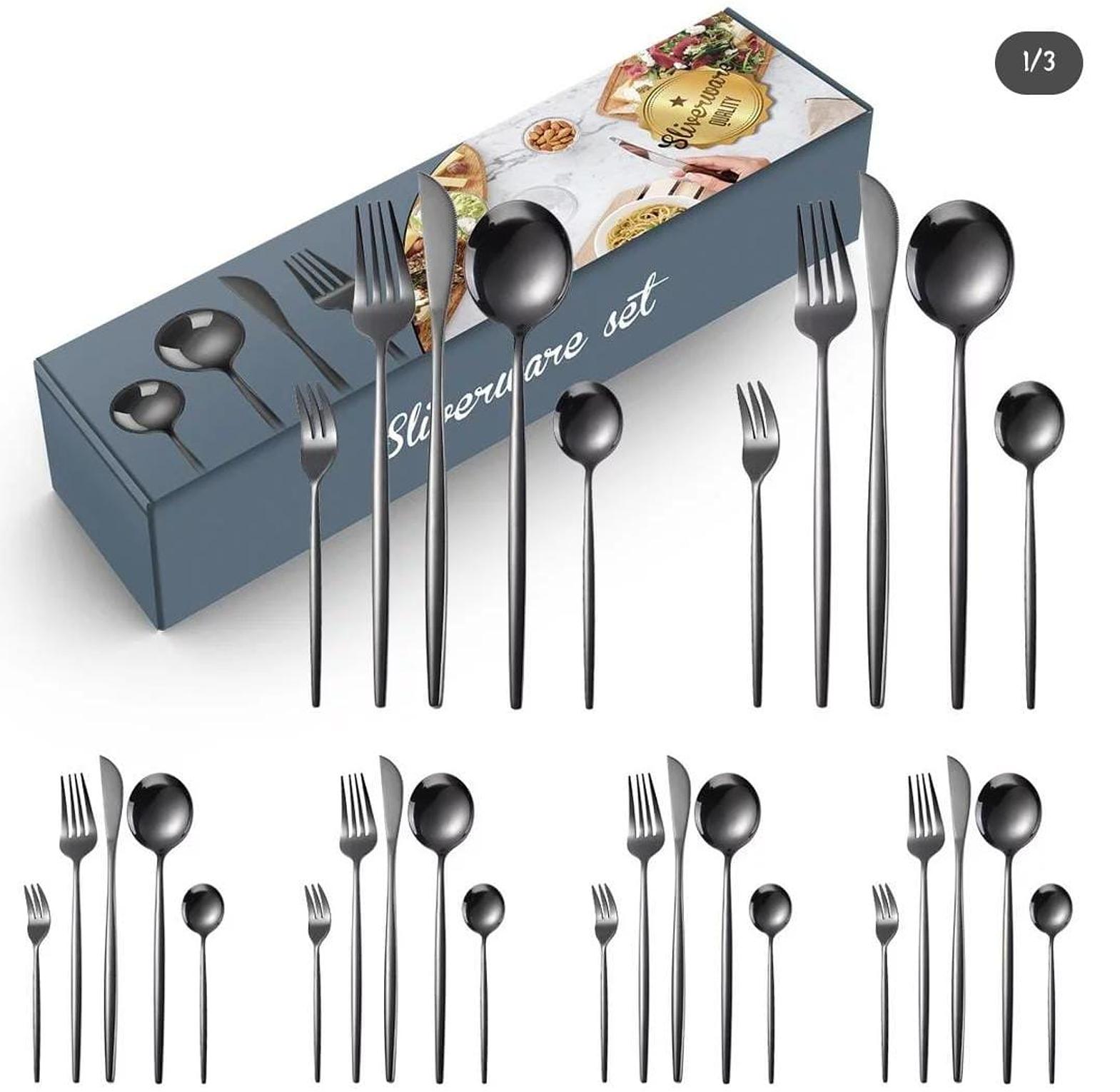 30-Piece Black Stainless Steel Cutlery Set is designed to elevate your dining experience, bringing a touch of contemporary chic to any table setting. Crafted from high-quality stainless steel with a sleek black finish, this set is not only stylish but also durable and resistant to rust and corrosion, ensuring years of enjoyment. The comprehensive 30-piece set provides service for six, making it perfect for family meals, dinner parties, and special occasions. Whether you're hosting a formal gathering or enjoying a casual weeknight dinner, this cutlery set will impress your guests and enhance your dining pleasure.