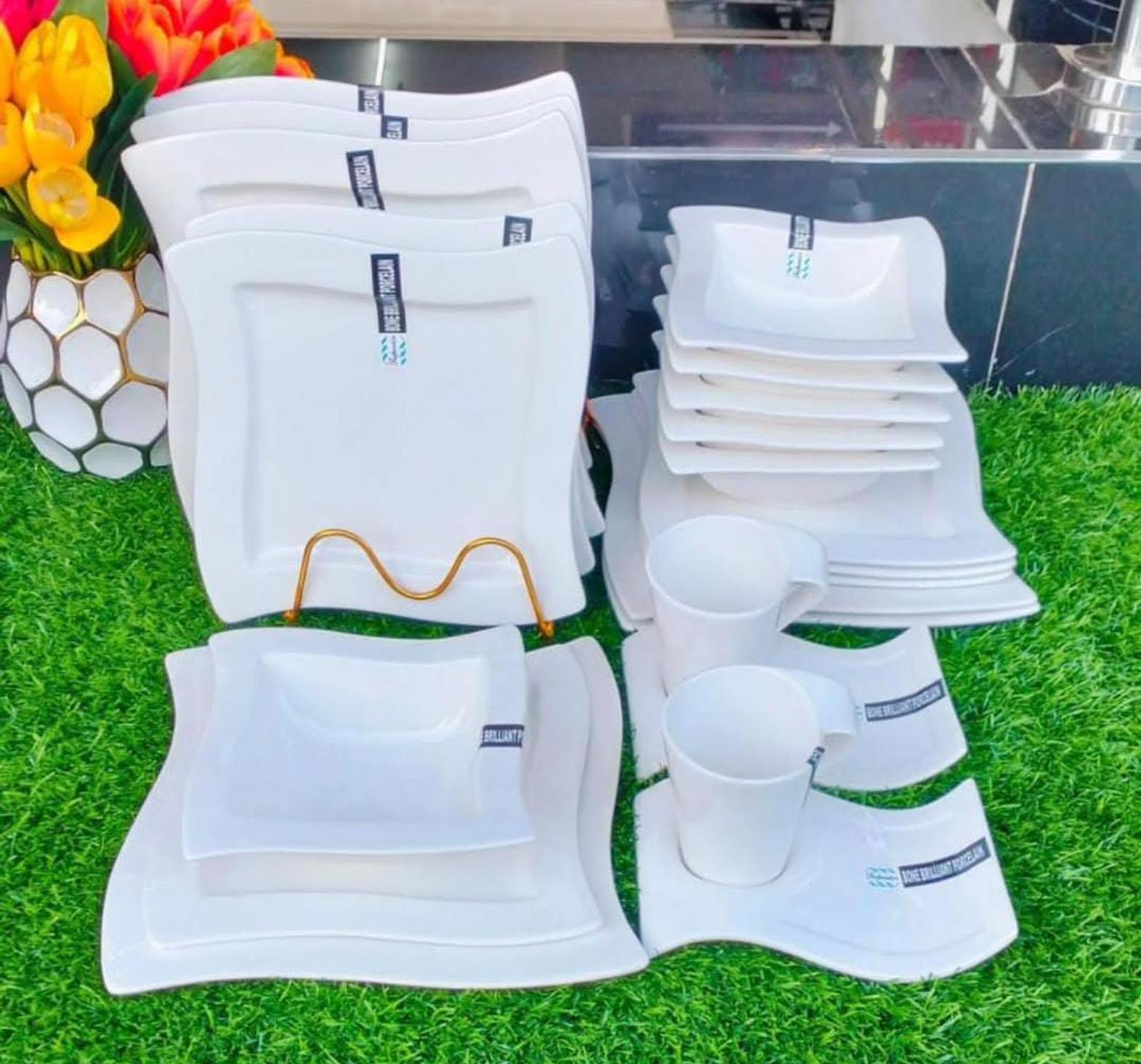 Simplicity meets sophistication in this 30-piece white plain dinner set — a timeless classic designed for modern living. Featuring 6 dinner plates, 6 side plates, 6 bowls, 6 cups, and 6 saucers, this complete set offers all the essentials for everyday dining or casual entertaining. With its clean lines and crisp white finish, it blends seamlessly with any table décor, making it easy to dress up or down depending on the occasion. The pieces are thoughtfully shaped for comfort and practicality, offering durability without compromising on style. Whether you're starting fresh or upgrading your kitchenware, this set brings quiet elegance to every meal, from morning coffee to evening dinner.