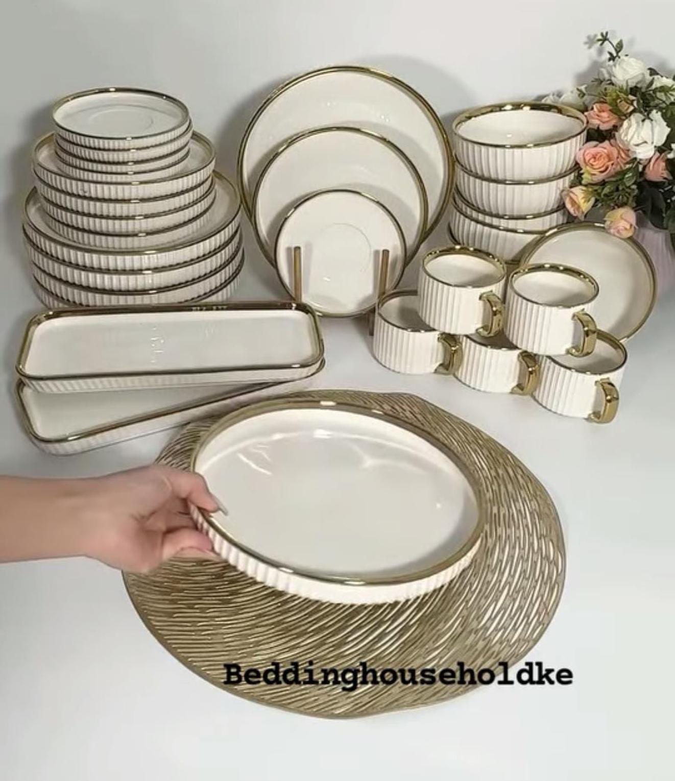 Transform your dining experience with this luxurious 32-piece European porcelain dinner set, a perfect blend of elegance and functionality. Expertly crafted from high-quality porcelain, each piece features a delicate yet durable design with a smooth, glossy finish that enhances any table setting. Inspired by classic European aesthetics, the intricate details and fine craftsmanship make this set ideal for both everyday meals and special occasions. Whether hosting family gatherings or formal dinners, this exquisite collection brings sophistication, charm, and a touch of opulence to every dining moment.