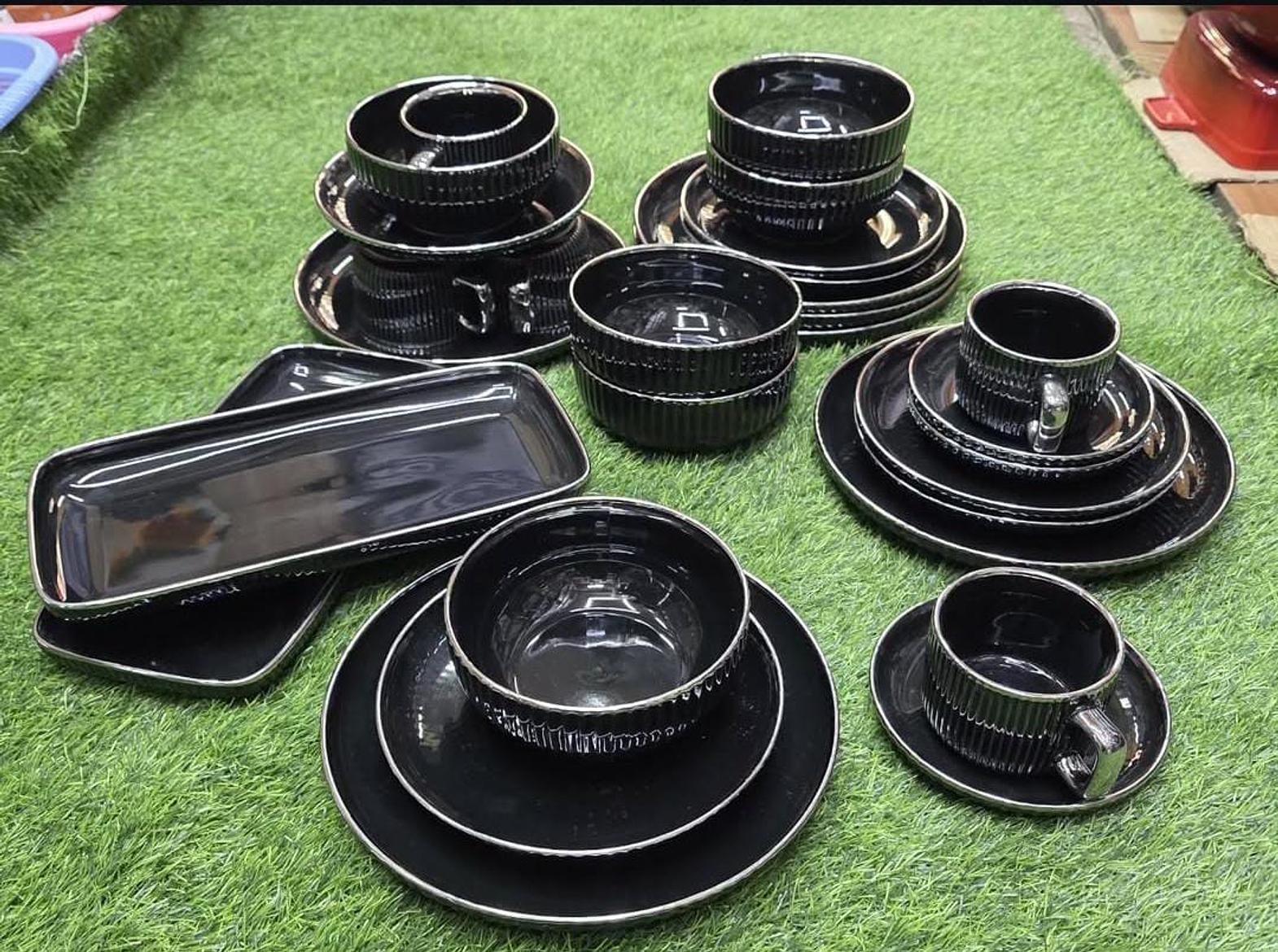 Crafted with refined European artistry, this 32-piece elegant porcelain dinner set brings classic charm and durable luxury to your dining table. The set includes 6 dinner plates (10"), 6 side plates (8"), 6 soup bowls (6"), 6 mugs (220ml), 6 cup saucers, and 2 rectangular serving platters—making it a complete ensemble ideal for family meals, formal dinners, or entertaining guests. Each piece features a flawless porcelain finish that is both lightweight and resilient, designed to withstand everyday use while maintaining its graceful aesthetic. Whether for modern tables or traditional settings, this set offers a seamless blend of function and timeless elegance.
