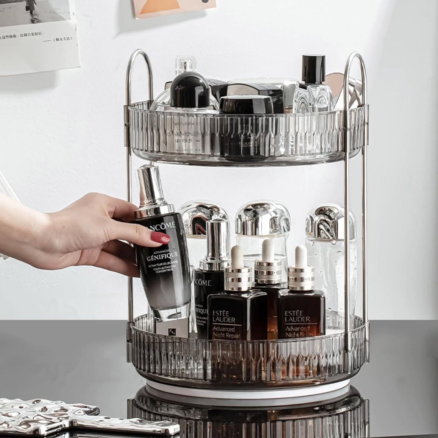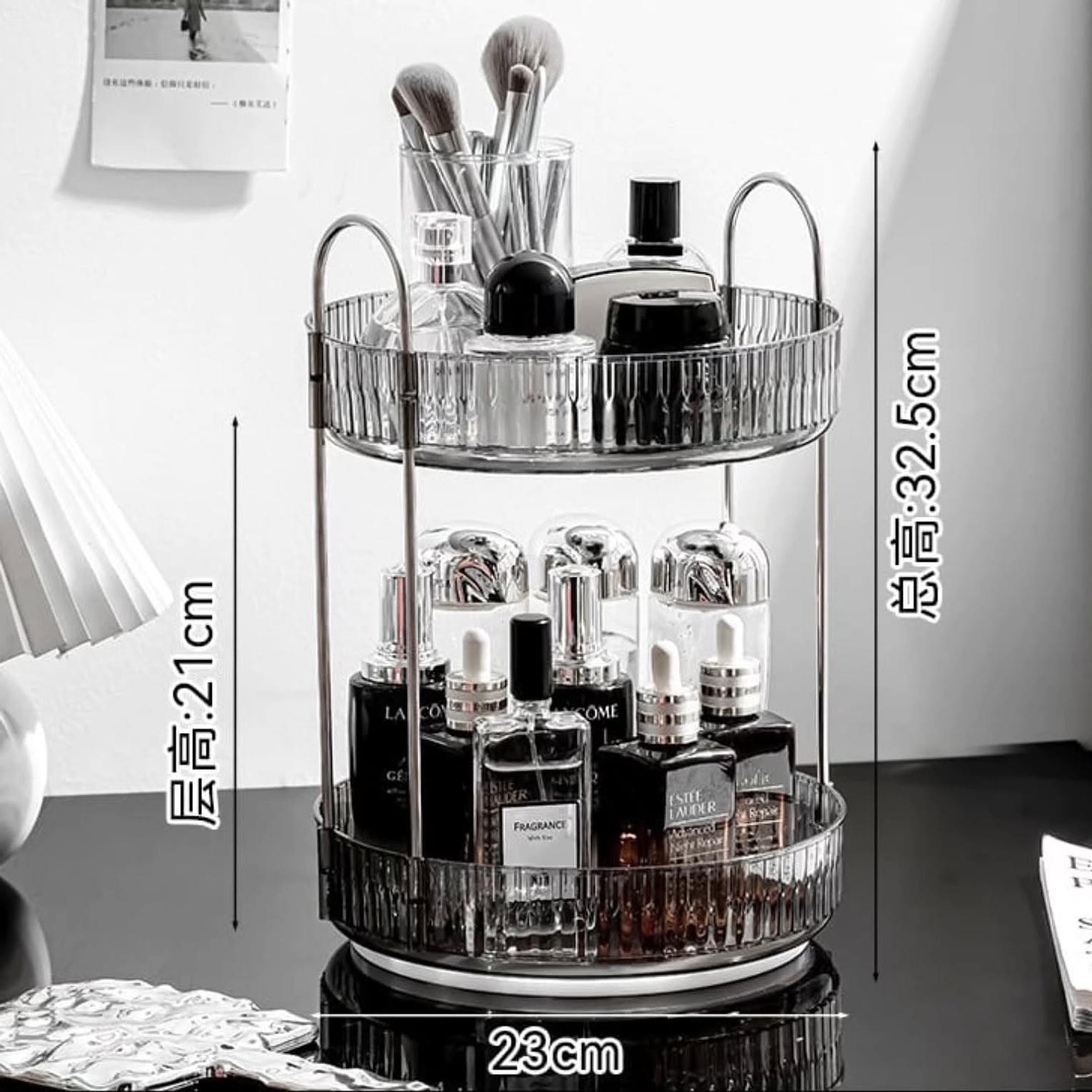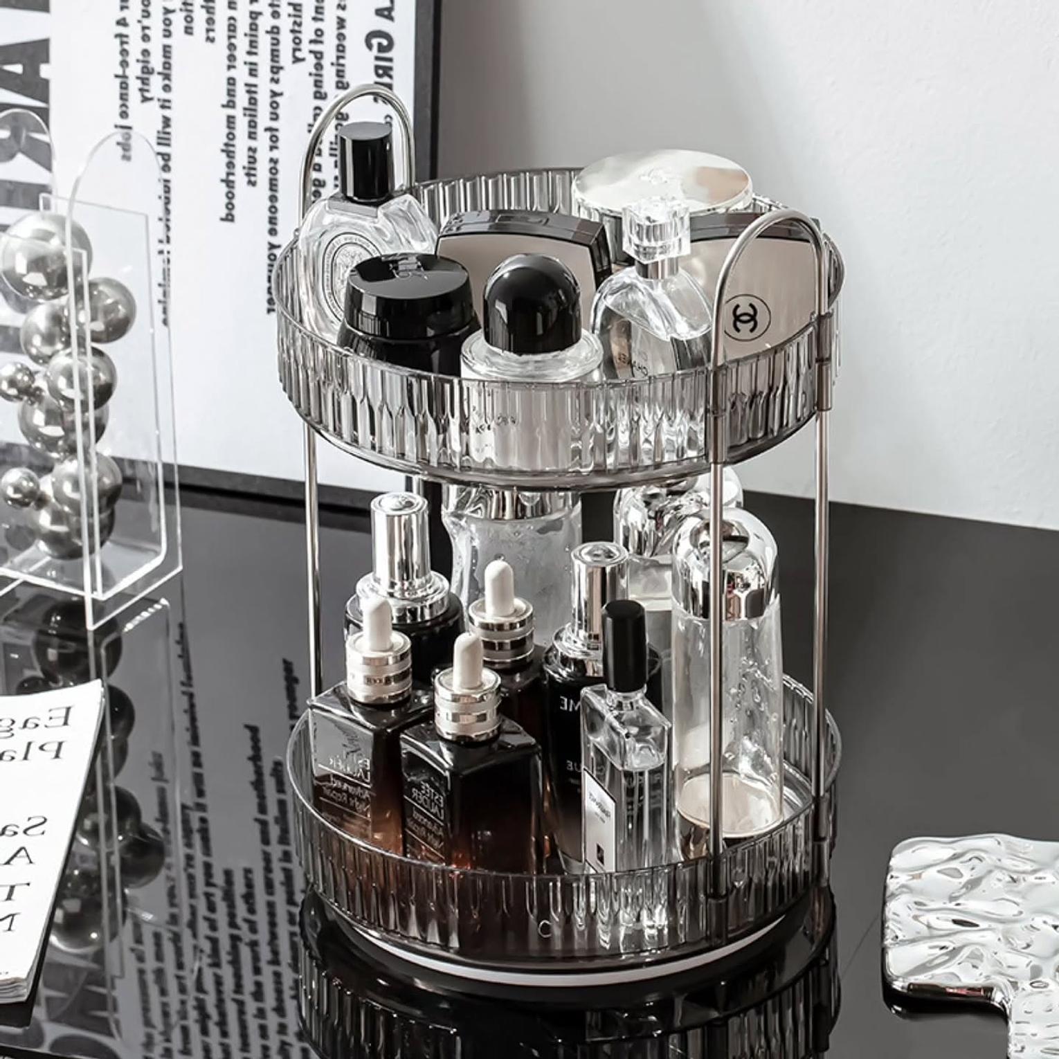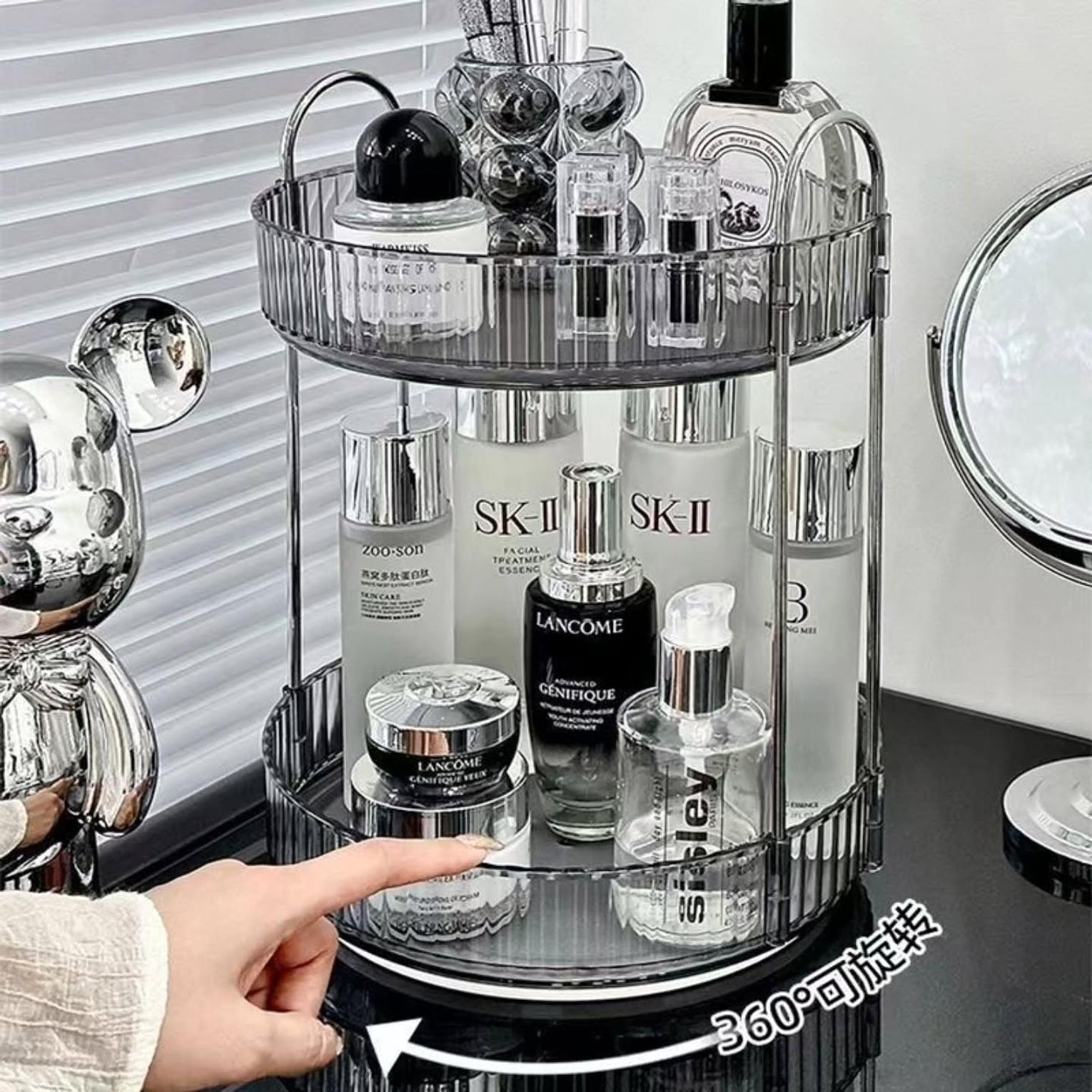 The 360° Rotating 2-Tier Transparent Makeup Organizer is the perfect blend of functionality and elegance for modern beauty lovers. Designed with a smooth swivel feature, it allows easy access to your cosmetics, skincare, and accessories from every angle. Crafted from high-quality, durable transparent material, this organizer is not only sturdy but also adds a classy touch to your vanity or bathroom. With two spacious tiers, it provides ample storage for lipsticks, brushes, perfumes, and more while keeping your space tidy and clutter-free. Stable, stylish, and easy to clean, this rotating cosmetic organizer is a must-have for any makeup collection.