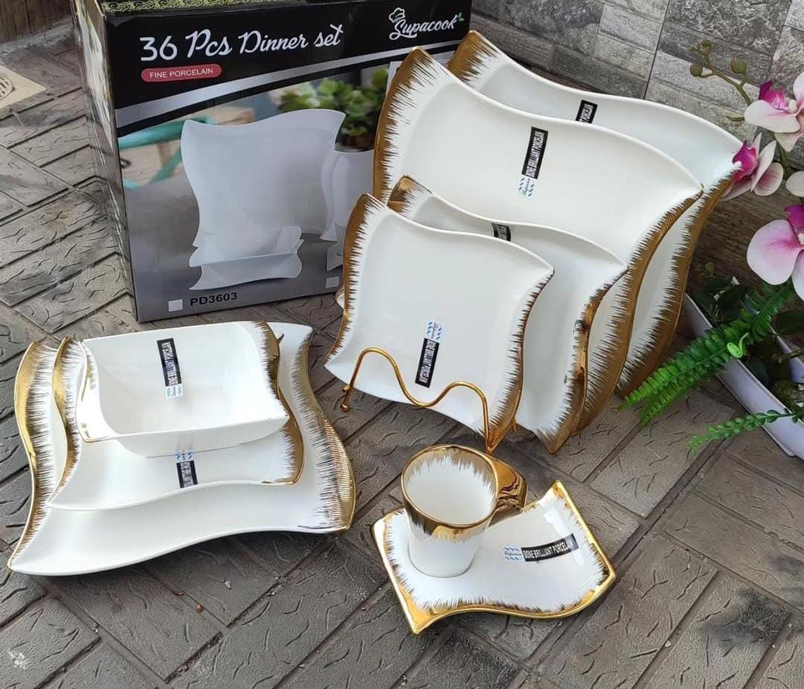 Redefine your dining experience with this stunning 36-piece Nordic-shaped dinner set, beautifully finished with a graceful gold rim that adds just the right touch of luxury. This thoughtfully arranged set includes 6 dinner plates, 6 medium plates, 6 side plates, 6 bowls, 6 cups, and 6 saucers — everything you need to host in style or elevate your daily meals. Inspired by clean Nordic design, each piece features soft, structured lines that feel modern yet warm, making it suitable for any table setting. The gold detailing adds a refined edge, perfect for those who enjoy minimalism with a hint of opulence. Whether it’s a cozy family brunch or a formal dinner with guests, this set effortlessly blends function, beauty, and timeless appeal.