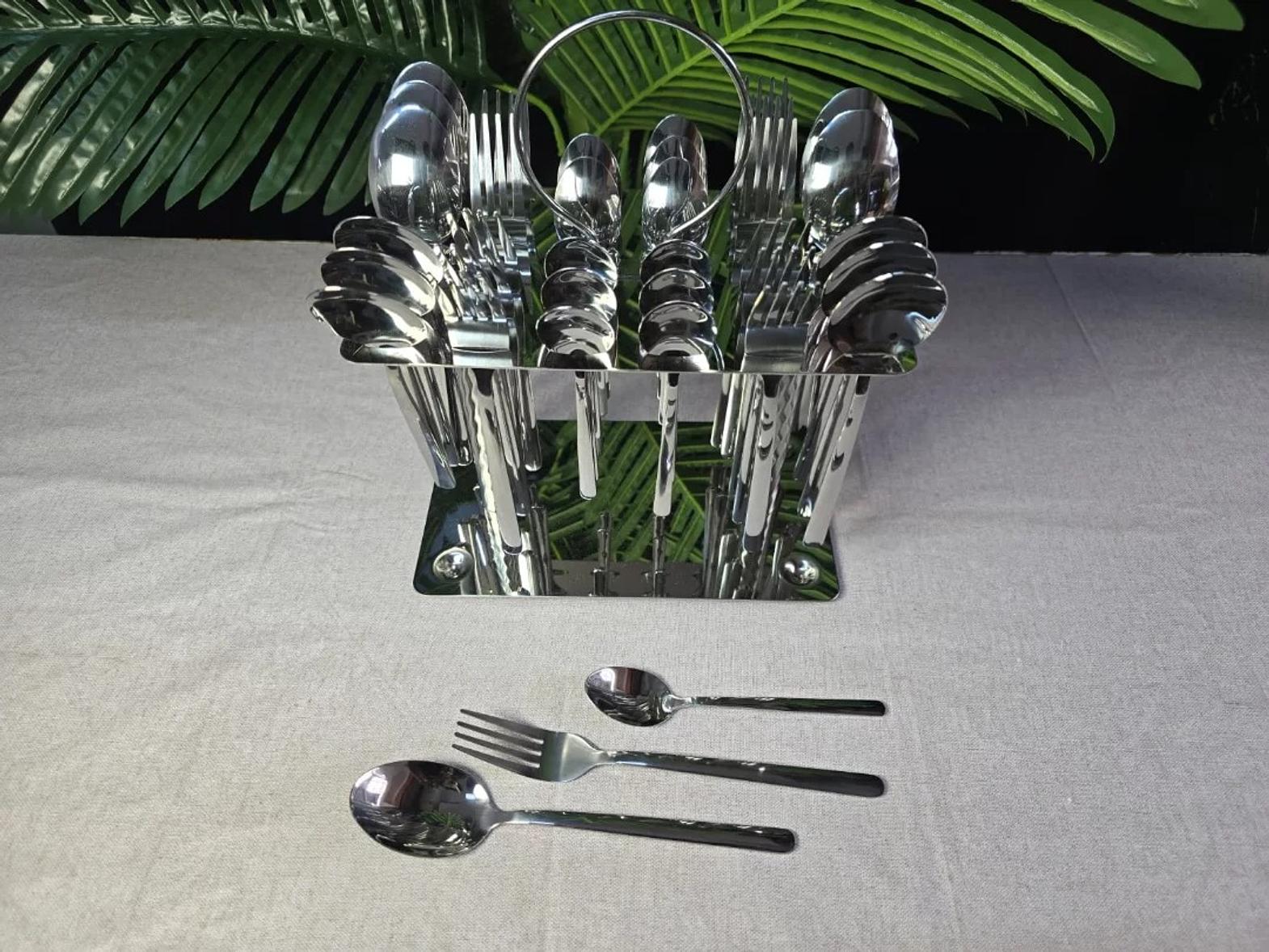 Elevate your dining experience with the exquisite Mirror Glow 36-Piece Cutlery Set, a perfect blend of sophisticated design and everyday functionality. This comprehensive collection is designed to cater to all your dining needs, including 12 table spoons, 12 tea spoons, and 12 forks, providing service for a large gathering or ample spares for daily use. Each piece is crafted with a brilliant silver and gold finish, lending a timeless elegance that complements any table setting, from casual brunches to formal dinners. The highlight of this set is its unique and stylish stand, which not only provides a convenient and organized storage solution but also acts as a striking decorative element for your kitchen or dining area. Made from high-quality materials, the cutlery is designed for durability and comfortable handling, ensuring a pleasant dining experience. This set combines practical utility with a modern aesthetic, making it an ideal choice for new homeowners, those upgrading their kitchenware, or anyone looking to add a touch of polished luxury to their home. This cutlery set is a must-have for those seeking cutlery sets, modern flatware, cutlery with stand, 36-piece dining sets, and elegant kitchen utensils.