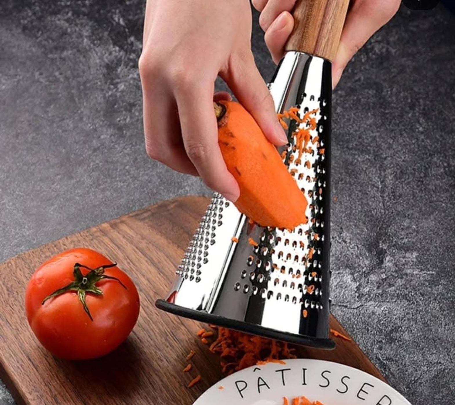 Upgrade your meal prep with this 3-sided manual vegetable shredder and grater, a must-have tool for every kitchen. Featuring three distinct grating surfaces, it effortlessly handles everything from fine zesting to coarse shredding, making it perfect for vegetables, cheese, fruits, and more. Its sturdy, ergonomic design ensures a comfortable grip and stable use, while the sharp stainless steel blades provide precision and efficiency. Compact and easy to clean, this multi-functional grater simplifies cooking, helping you create fresh, finely textured ingredients for your favorite recipes with ease.