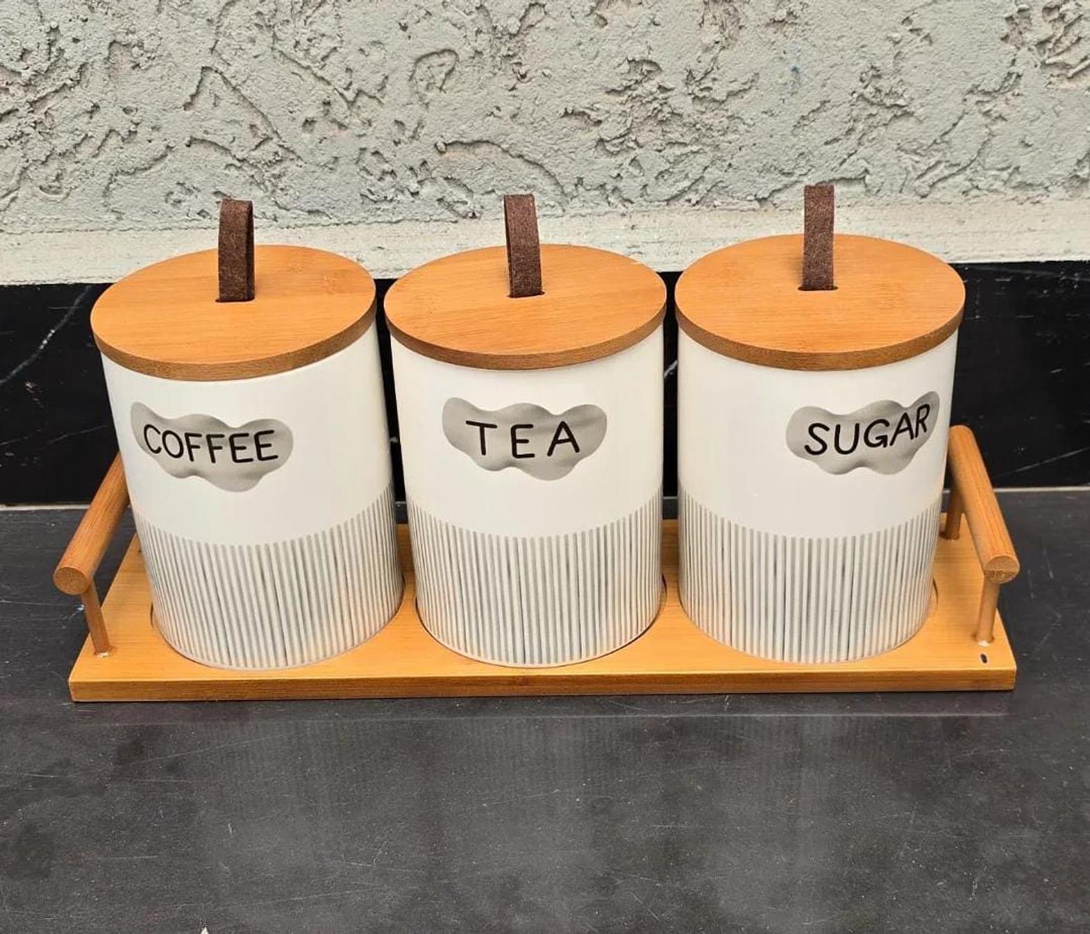 Upgrade your kitchen storage with this beautifully designed 3-piece ceramic canister set, complete with a sleek bamboo stand for a touch of natural elegance. Each canister is crafted from high-quality, durable ceramic, providing an airtight seal to keep dry goods like sugar, coffee, tea, or spices fresh and protected. The smooth, minimalist design blends seamlessly with modern and rustic decor, while the bamboo stand offers stability and an eco-friendly aesthetic. Ideal for both functionality and style, this canister set adds sophistication to your countertop while keeping your essentials neatly organized and easily accessible.