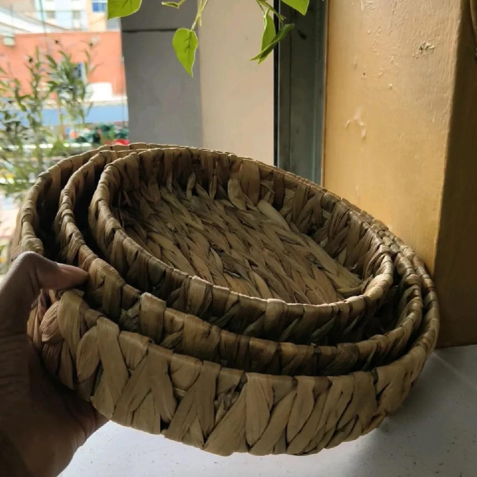 Enhance your home's aesthetic with the Terra Weave Natural Wicker Decorative Trays, a charming and versatile set of three handcrafted pieces. Each tray is meticulously woven from natural wicker, showcasing an intricate texture and earthy tones that bring an authentic, organic feel to your decor. Designed as stackable nesting trays, they offer convenient storage when not in use and come in varying sizes to accommodate diverse decorative and organizational needs. Perfect for displaying candles, small potted plants, keys, or serving as an elegant catch-all on entryways, coffee tables, or nightstands, these trays are a stylish solution for decluttering and adding visual interest. While designed without handles for a sleek, minimalist profile, their sturdy construction ensures durability for everyday use. Embrace the beauty of natural materials and artisanal craftsmanship with this functional yet decorative set. This tray set is ideal for those searching for wicker decorative trays, natural woven baskets, boho home decor, rustic accent pieces, and eco-friendly storage solutions.