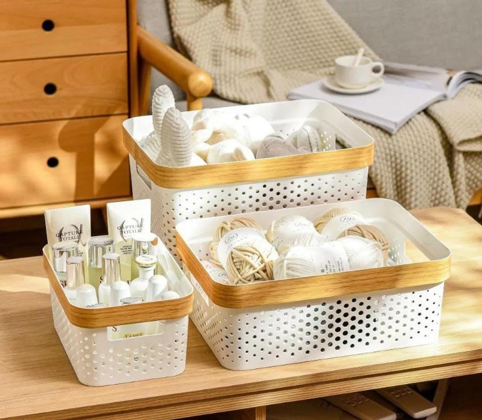 Upgrade your home organization with this sophisticated 3-piece Nordic multipurpose storage basket set, featuring a luxurious goldish lining for a touch of elegance. Designed for versatility, these baskets are perfect for storing toiletries, cosmetics, office supplies, or household essentials while enhancing your decor. The durable yet lightweight construction ensures long-lasting use, while the minimalist Nordic design blends seamlessly with modern, contemporary, or classic interiors. Whether used in the living room, bedroom, bathroom, or office, these baskets offer both practicality and refined aesthetics, keeping your space neat and stylish.