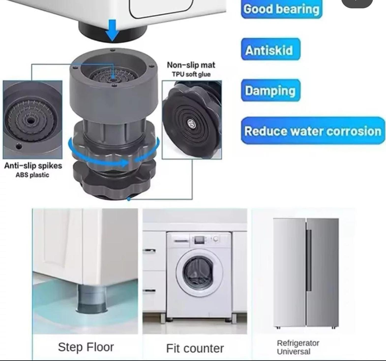 Ensure a quieter, more stable washing experience with this set of 4 heavy-duty adjustable height anti-vibration pads, designed specifically for washing machines. These durable pads absorb and minimize vibrations, preventing your machine from moving or shaking during cycles, which helps to extend its lifespan. The adjustable height feature provides a customizable fit for various machine models, ensuring optimal stability and protection for your floors. Not only do these pads reduce noise, but they also protect your flooring from scratches and dents. Easy to install, they are the perfect solution for homes with limited space or sensitive flooring, offering peace of mind with every wash.