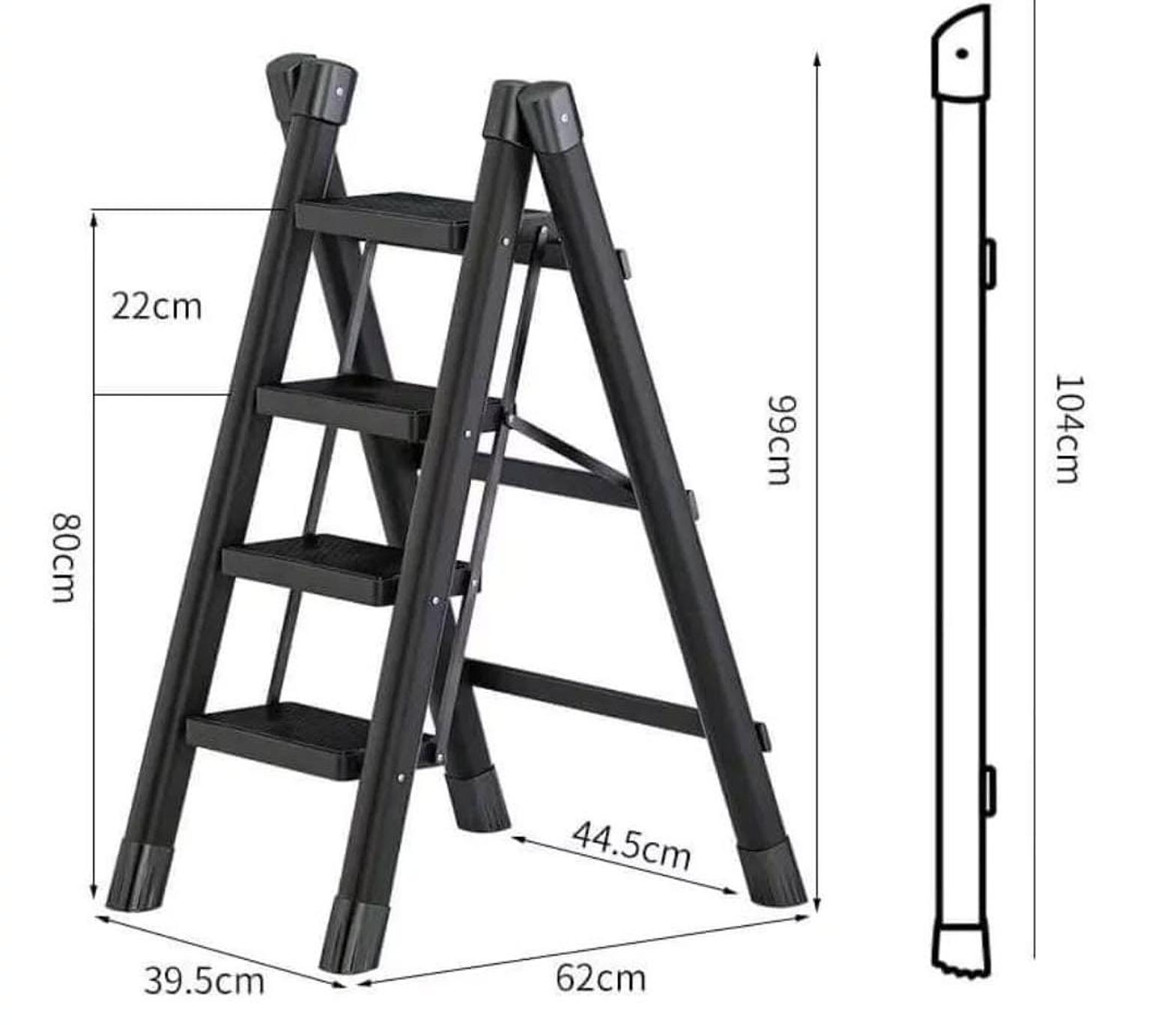 Perfect for both home and office use, the 4-Step Black Foldable Stepper provides safe and convenient access to high places. With its durable, non-slip steps and sturdy frame, it ensures stability while you reach for those out-of-the-way items. The sleek black design adds a modern touch to any room, while the foldable feature allows for easy storage when not in use, making it ideal for tight spaces. Lightweight yet strong, this stepper is designed for everyday tasks, whether you're changing lightbulbs, reaching the top shelf in your kitchen, or organizing high cupboards. Its practical design combines functionality with ease of use, making it an essential tool for any home.