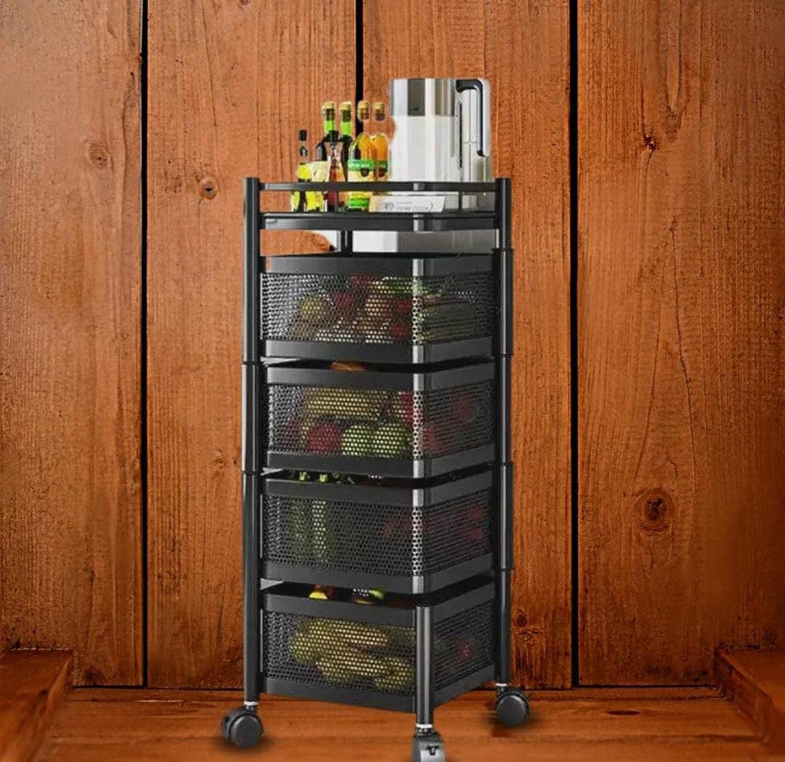 Maximize your kitchen storage with this innovative 4-tier squared design rotating fruit and vegetable rack, combining practicality with a sleek and modern look. The rotating feature allows for easy access to all your produce, ensuring nothing gets overlooked, while the sturdy design provides ample space for storing fruits, vegetables, and even other kitchen essentials. Made from durable materials, this rack is designed to withstand daily use, helping to keep your items organized, fresh, and within arm’s reach. Whether placed on the countertop, in your pantry, or next to the dining area, its rotating feature and contemporary design make it a functional yet stylish addition to any kitchen or dining space.