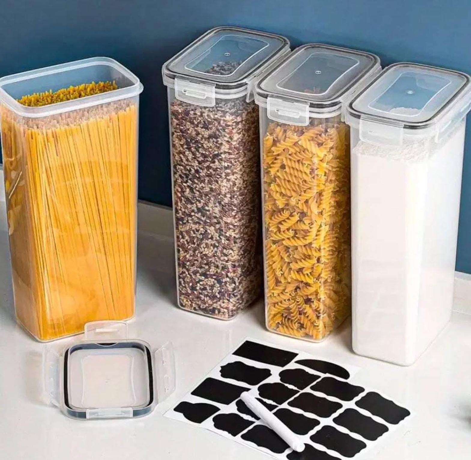 Transform your pantry with this set of 4 BPA-free airtight food storage containers, ideal for maintaining the freshness and quality of your dry goods. These containers feature airtight locking lids that create a secure seal, effectively keeping out moisture, air, and pests while preserving the flavour and texture of your ingredients. Perfect for storing cereals, grains, flour, snacks, or pasta, their stackable design helps save valuable space in your cupboards or countertops. Made from durable, food-grade plastic, these containers are lightweight, easy to clean, and built to last. Sleek and functional, they are an essential addition for anyone seeking an organised and efficient kitchen.