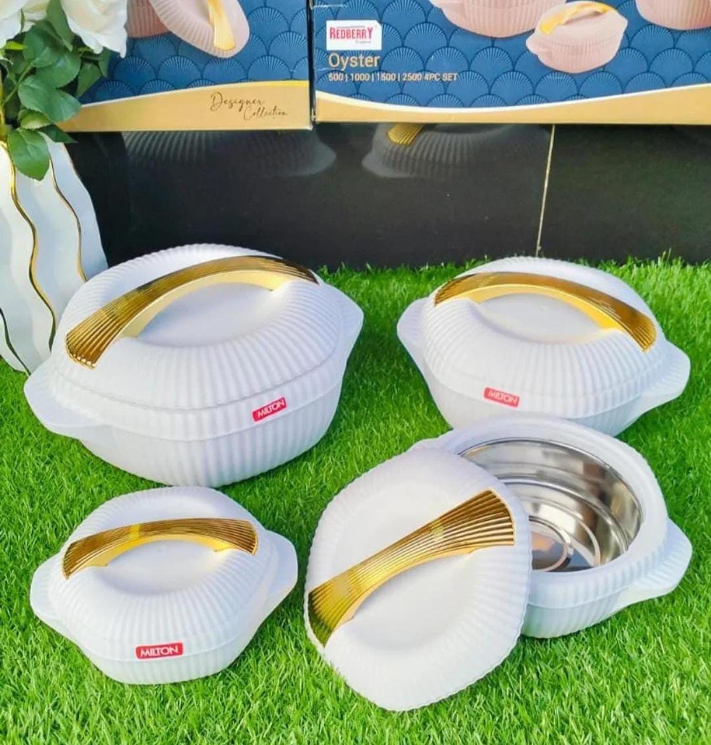 Elevate your dining experience with this 4-piece luxurious insulated hotpot set, crafted to provide both style and functionality. Each pot is designed with high-quality insulation to keep your food hot for hours, ensuring that every bite remains fresh and flavorful. The sophisticated design, featuring elegant finishes and secure, easy-to-use lids, complements any table setting, from casual meals to festive occasions. The set includes varying sizes to suit different dishes—perfect for soups, stews, rice, and more. Whether you're hosting a dinner party or enjoying a family meal, these hotpots offer the perfect combination of luxury, durability, and convenience, ensuring your dishes stay warm while adding a touch of class to your dining table.