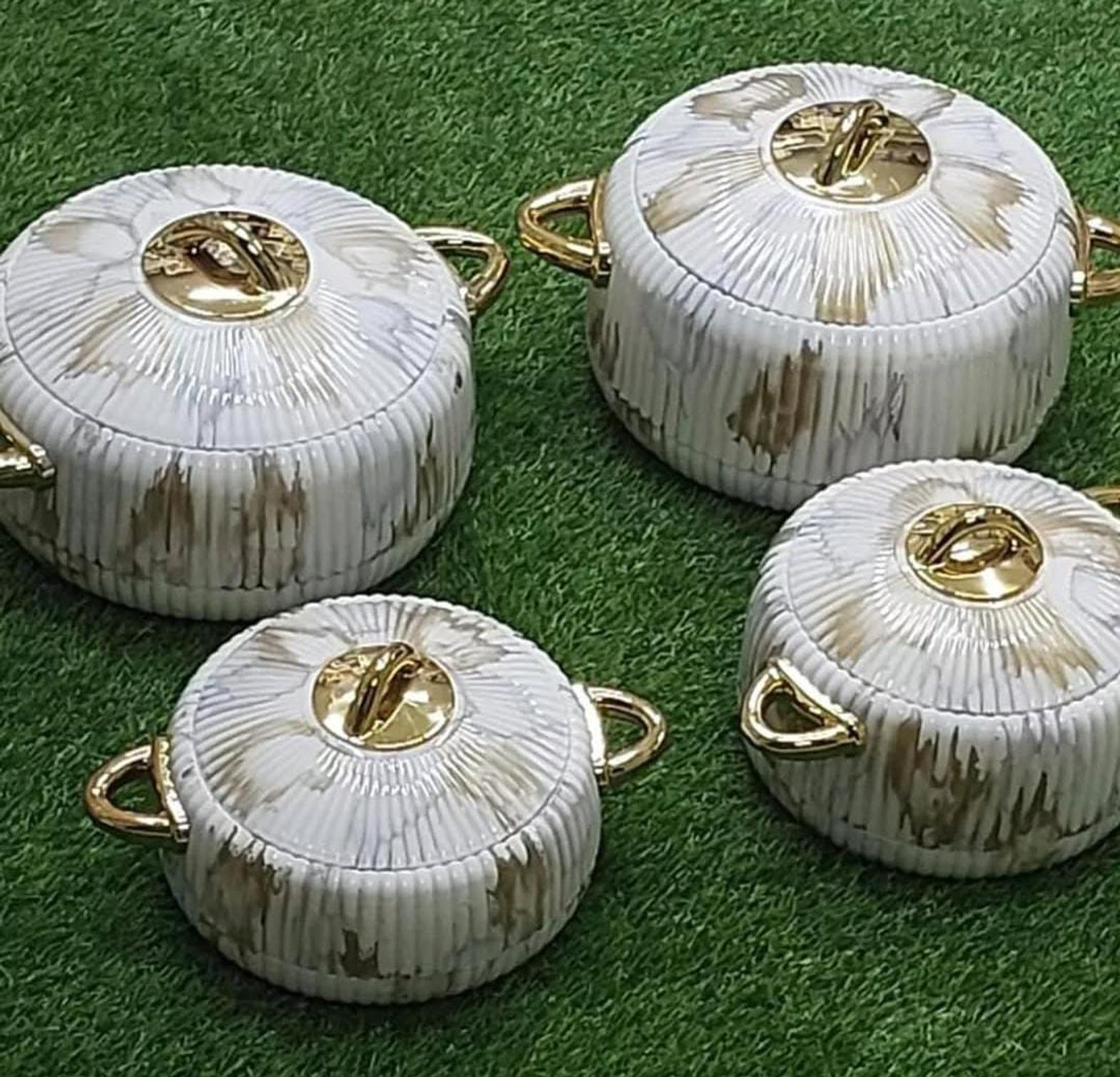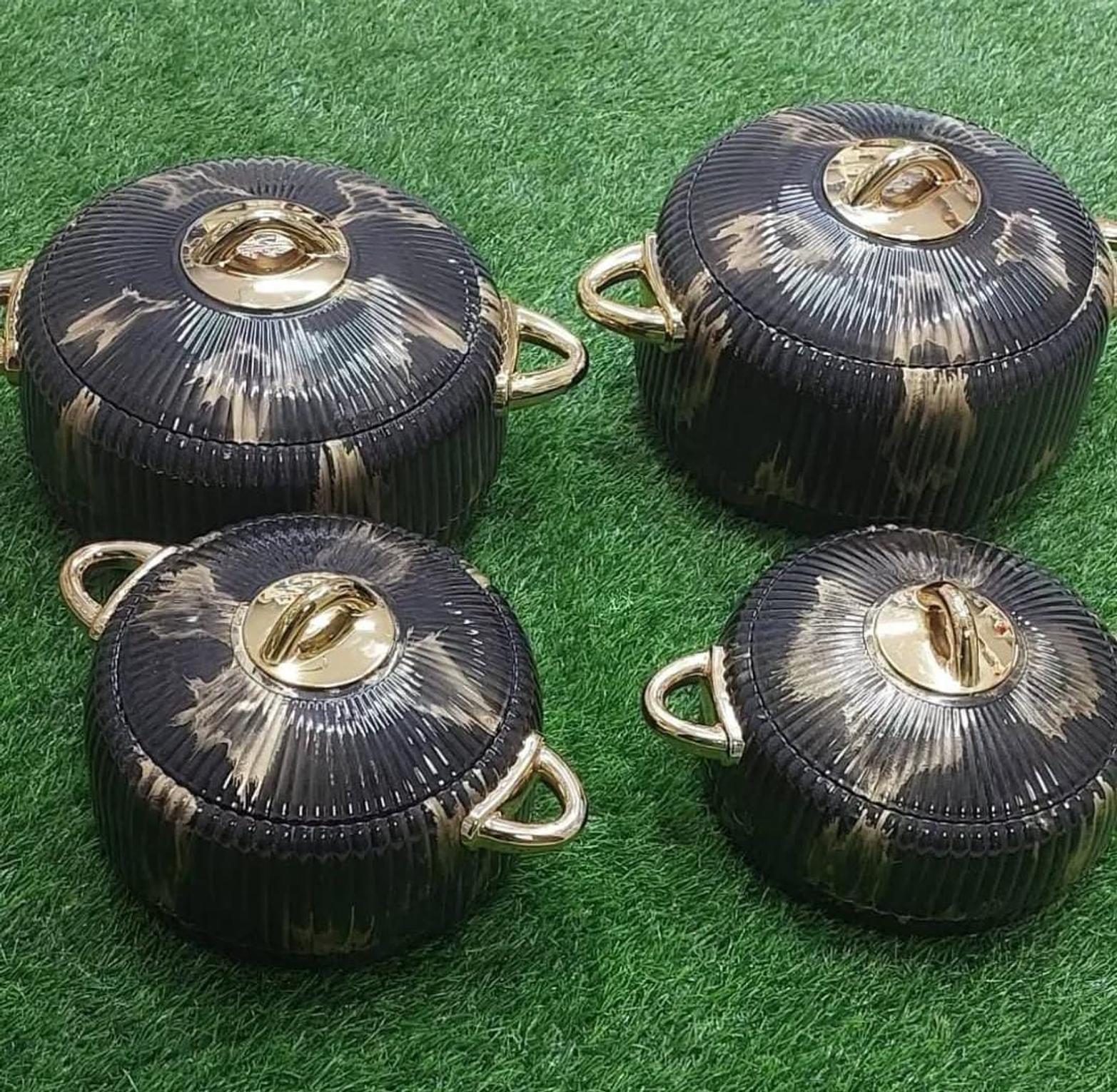 Our 4-piece luxurious insulated hotpot set offers the perfect combination of elegance and practicality. Crafted with high-quality materials, each hotpot features a durable insulated design that keeps your food warm for extended periods, making it ideal for serving during family meals or dinner parties. The sleek, modern aesthetic adds sophistication to your table, while the spacious design ensures ample capacity for your favorite dishes. Whether you're serving stews, curries, or soups, these insulated hotpots are designed to maintain the perfect temperature, offering both style and convenience to elevate your dining experienc