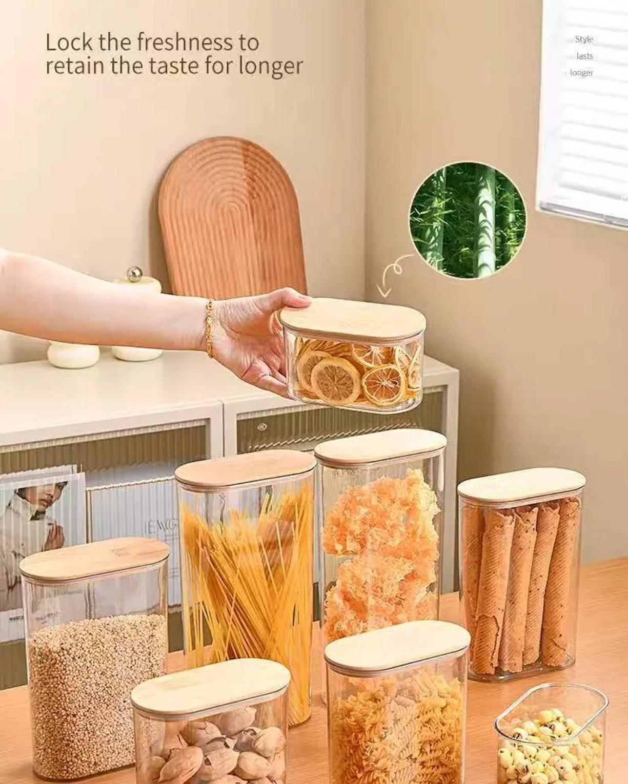 What truly sets this set apart are the exquisite, natural bamboo lids. More than just stylish, these lids are designed to provide an airtight seal, effectively locking in freshness to retain the taste for longer and protect your food from moisture and pests. The combination of clear acrylic and warm bamboo creates a sophisticated look that complements any kitchen style. Durable, easy to clean, and designed for efficient space utilization, these containers are a must-have for anyone seeking to maintain freshness, reduce waste, and elevate their kitchen organization.