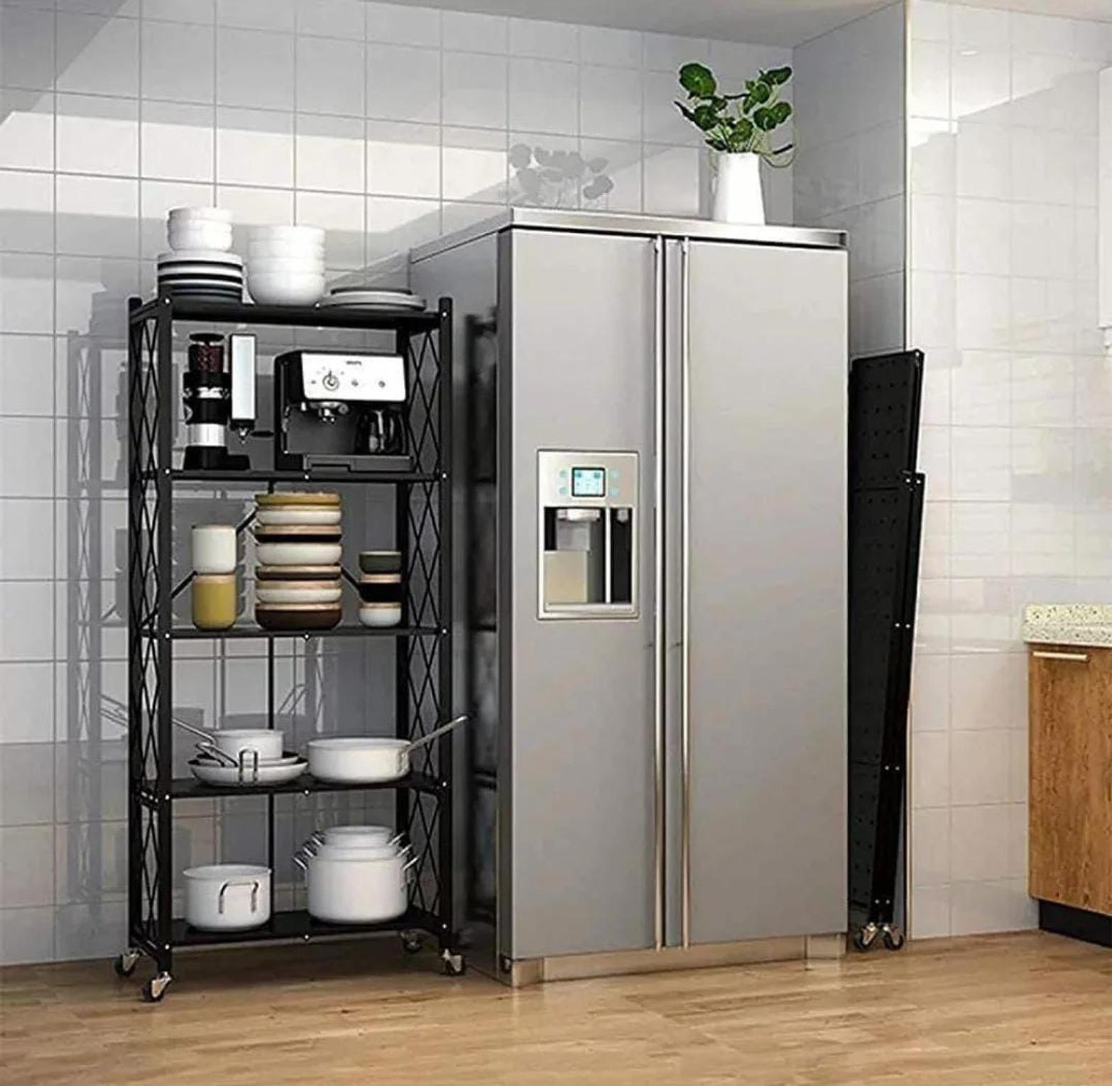 The 5-Tier Folding Shelf with Wheels is the perfect solution for anyone looking to maximize storage in a compact space. With five sturdy tiers, it provides ample room to organize books, kitchen items, office supplies, or even decorative pieces. Its folding design allows for easy storage when not in use, making it a great choice for small apartments, offices, or any room where space is limited. Equipped with smooth-rolling wheels, this shelf is easily movable, ensuring you can adjust your setup with minimal effort. Its durable construction and practical design combine functionality and style, making it a must-have storage solution.